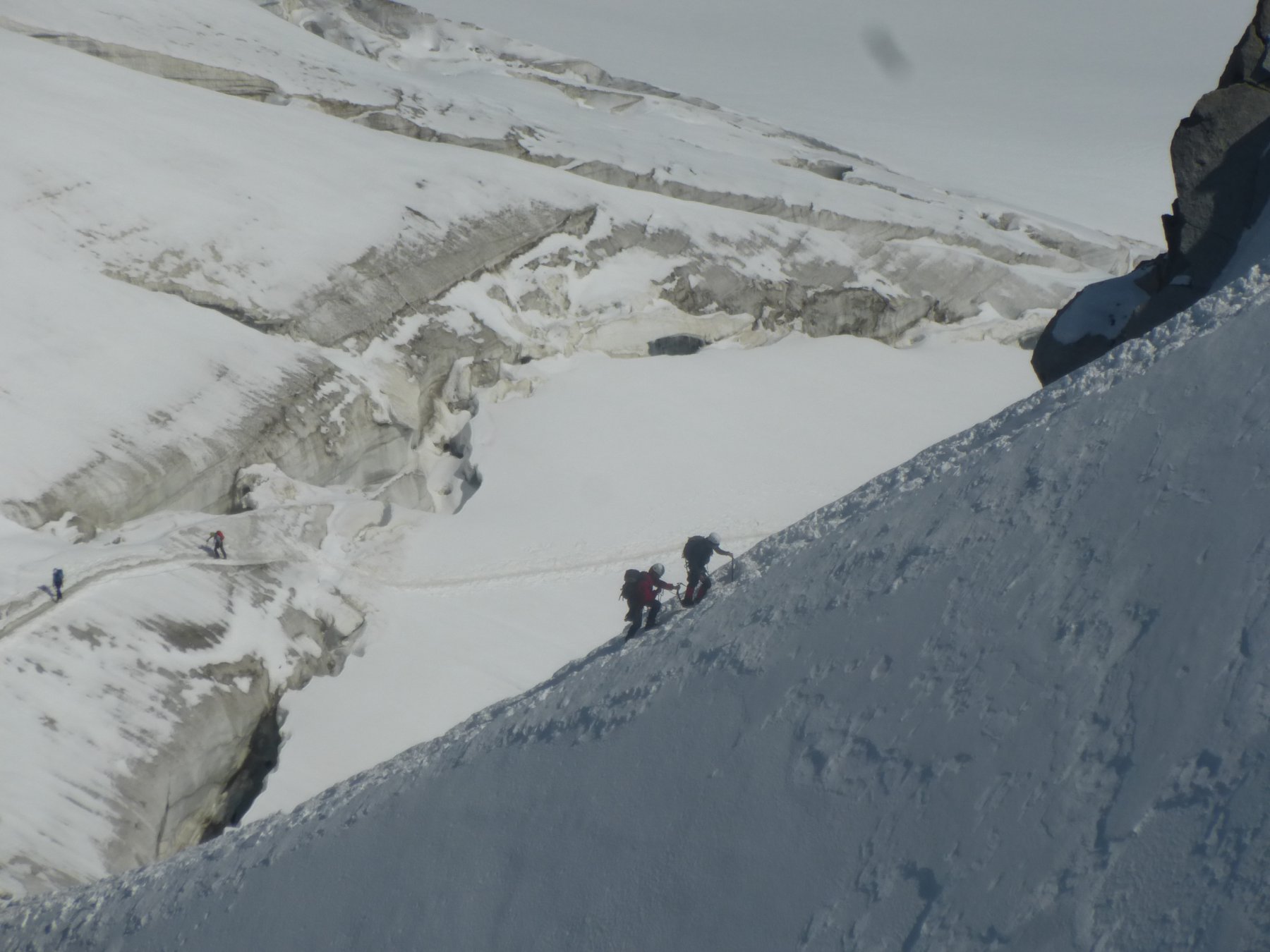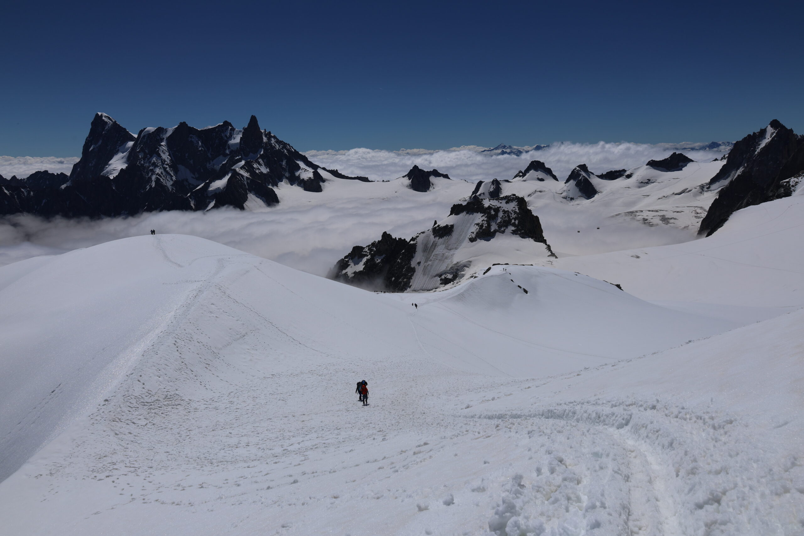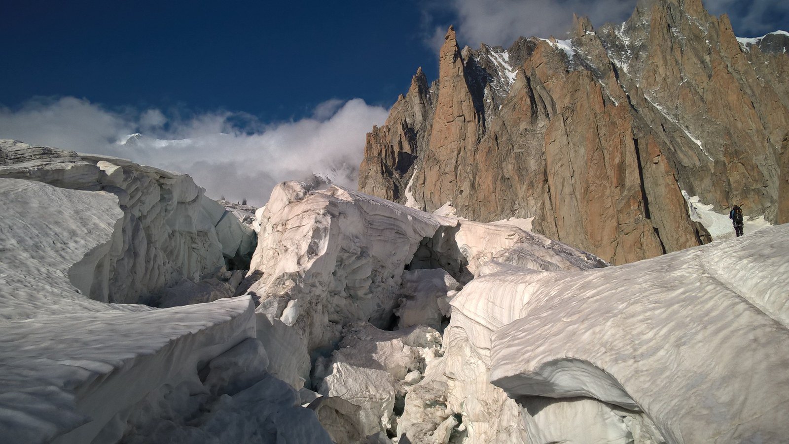 Rientro per la medesima via o in alternativa con la funivia (tratta Aiguille du Midi-Punta Helbronner 25.5€) quando questa è in funzione.