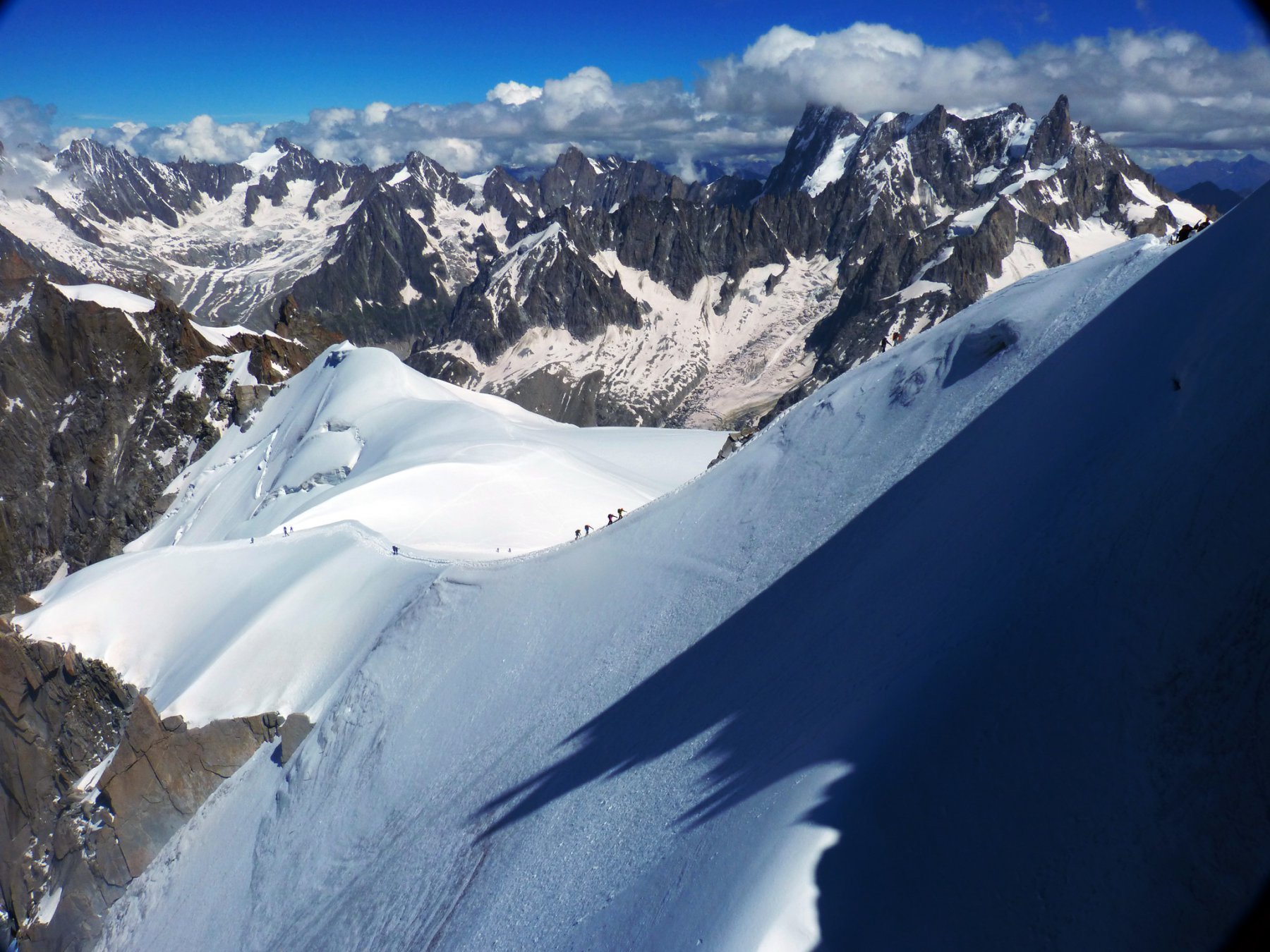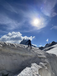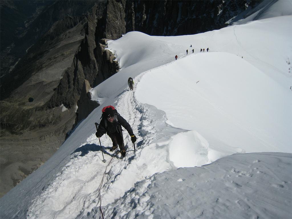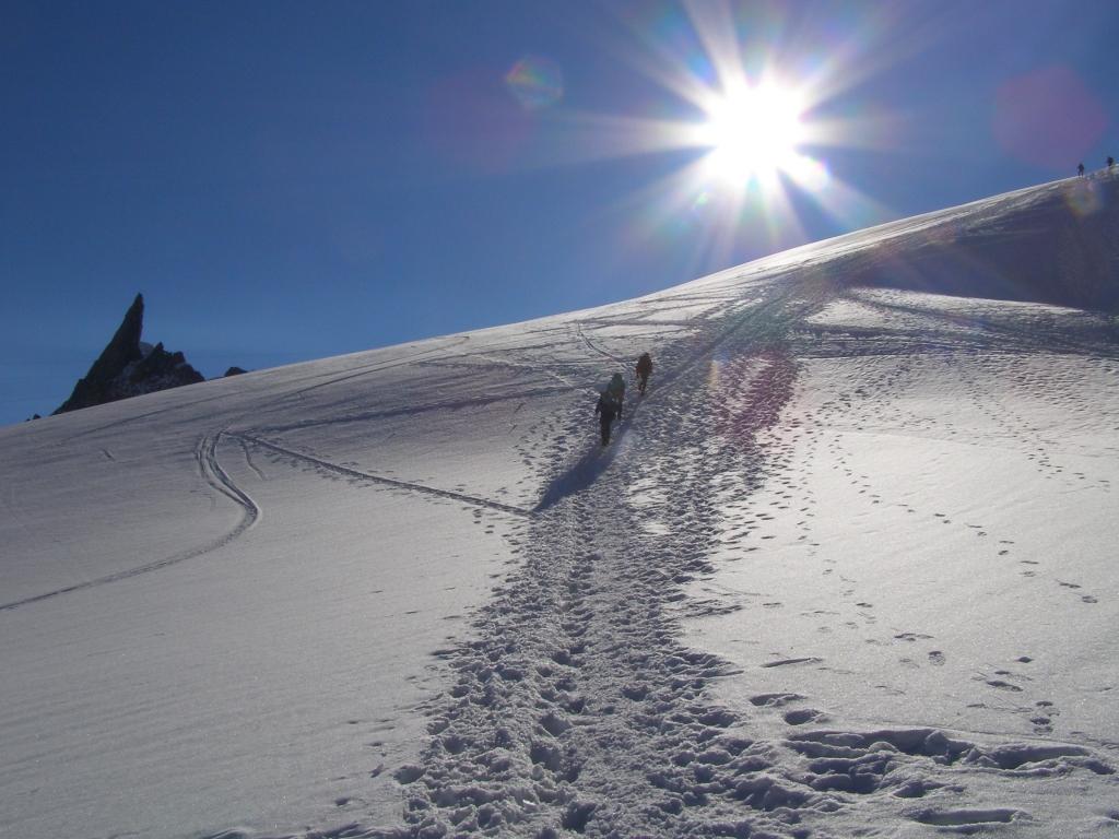 Attraversata questa spettacolare zona e passata la Piramid du Tacul inizia le lenta e costante risalita chi in circa due ore porta all’Aiguille du Midi.