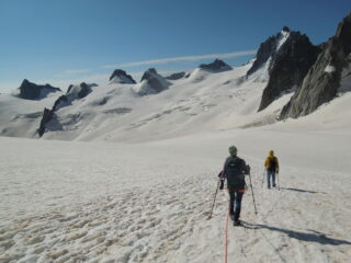 La traccia è ben segnata, le uniche "difficoltà" sono l'attraversamento di ponti di neve e crepacci che a seconda della stagione possono risultare più o meno problematici