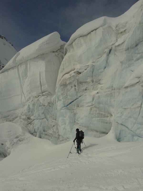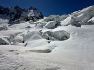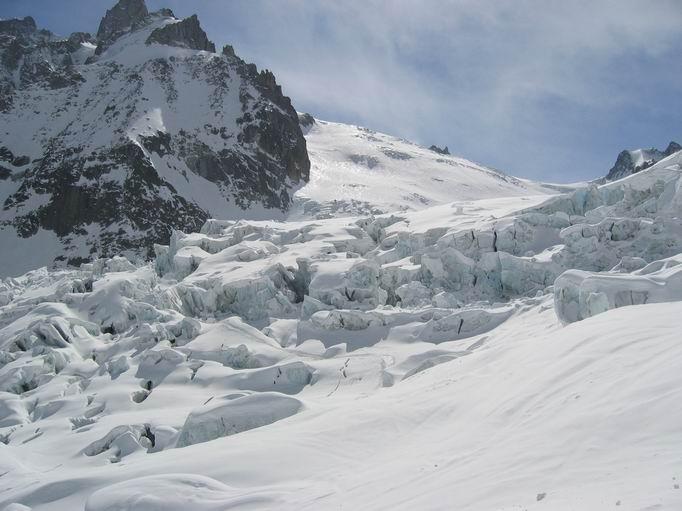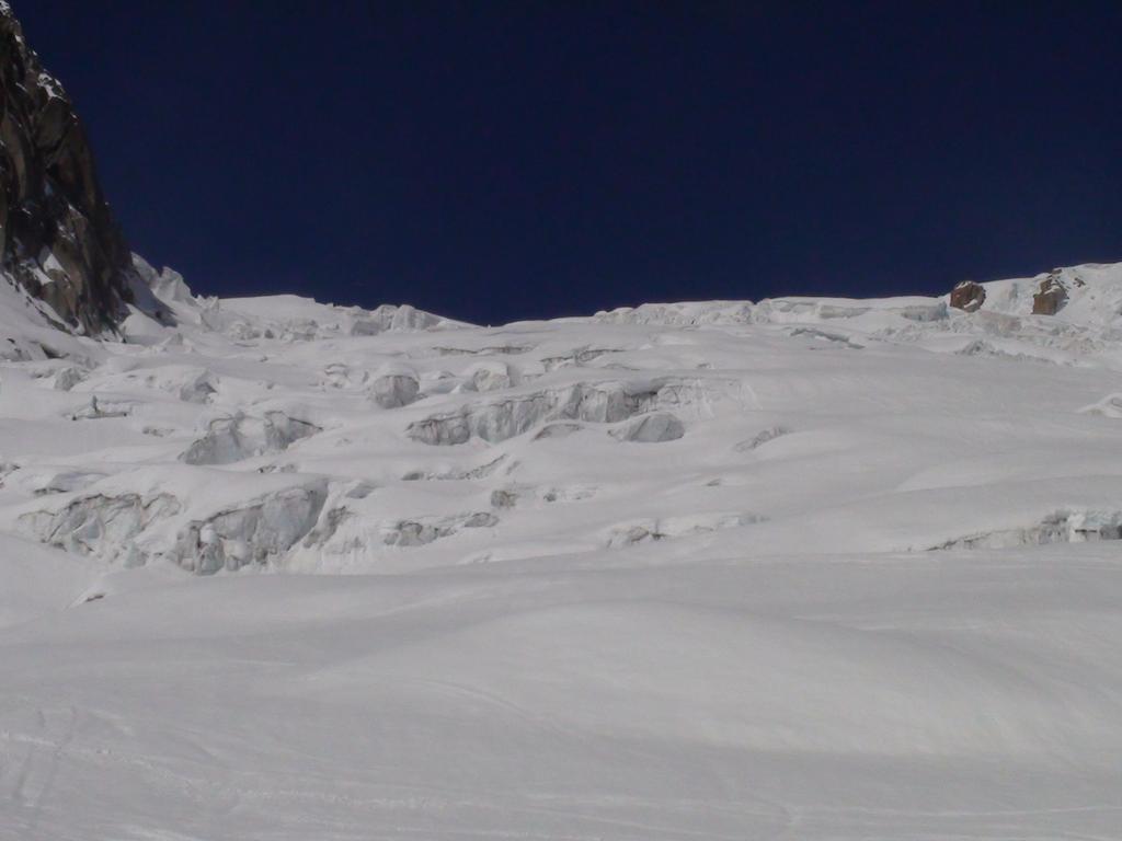 Superata una sezione pianeggiante si affronta la serraccata del Requin, in cui ci si destreggia fra i seracchi che uniscono l’alto bacino del Gigante con il ghiacciaio del Tacul (zona molto crepacciata soprattutto in condizioni di scarso innevamento).