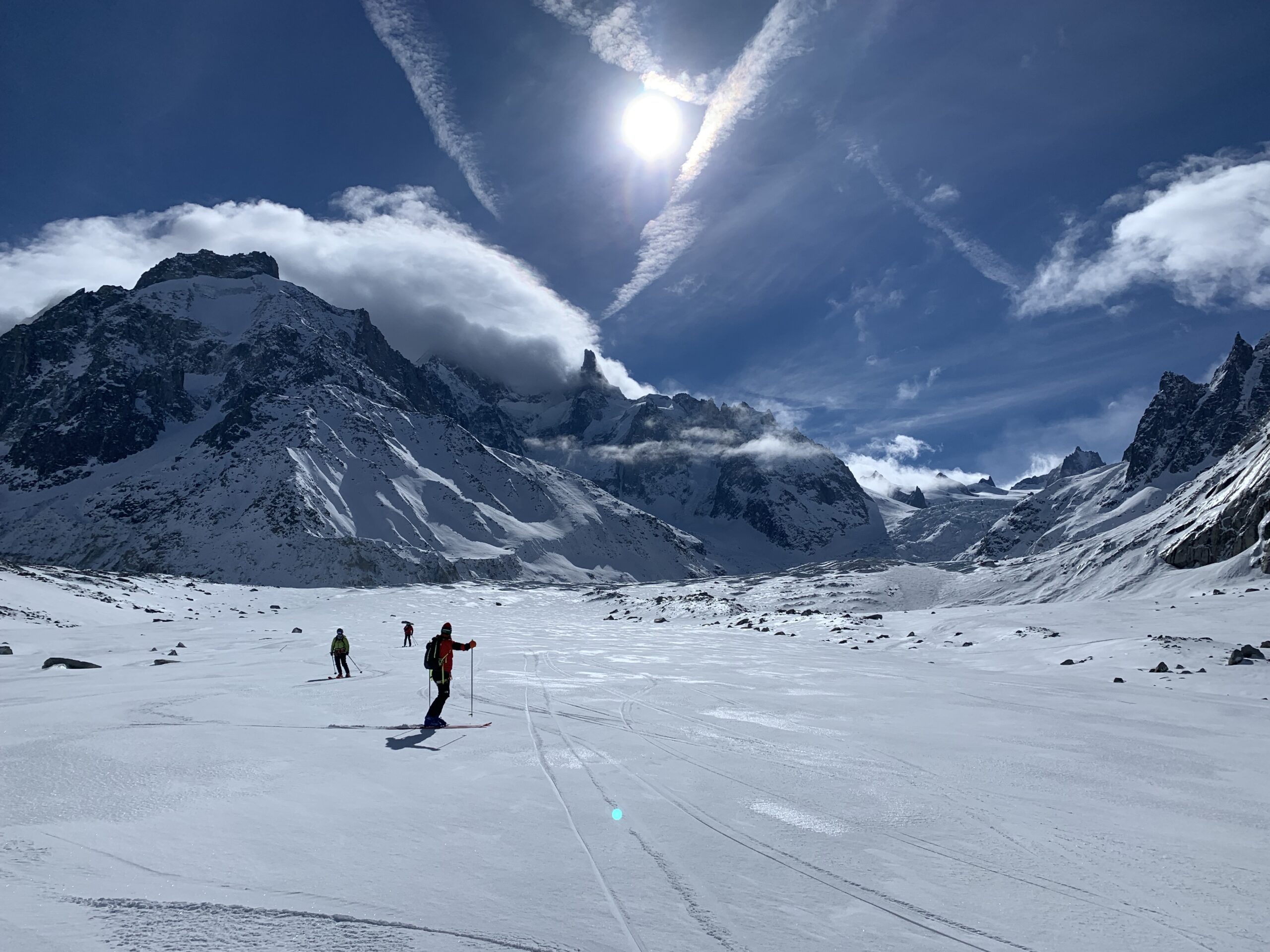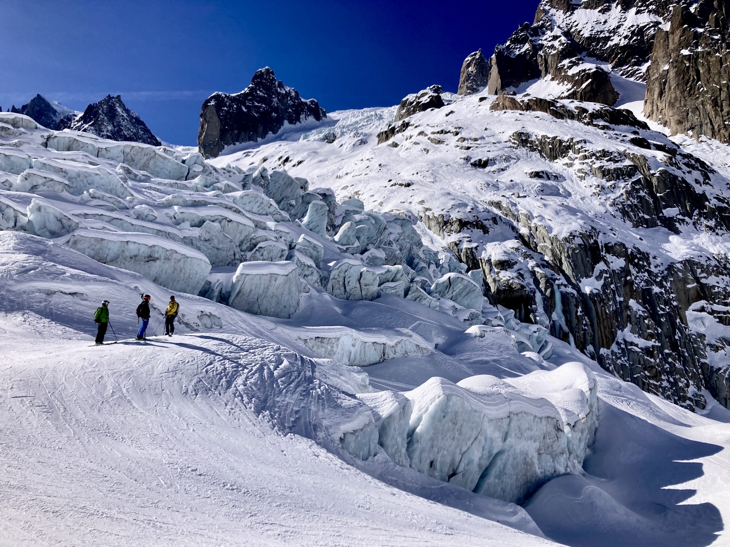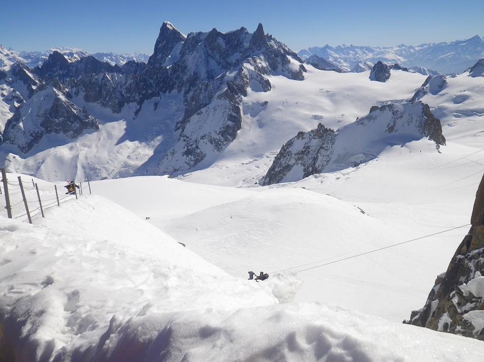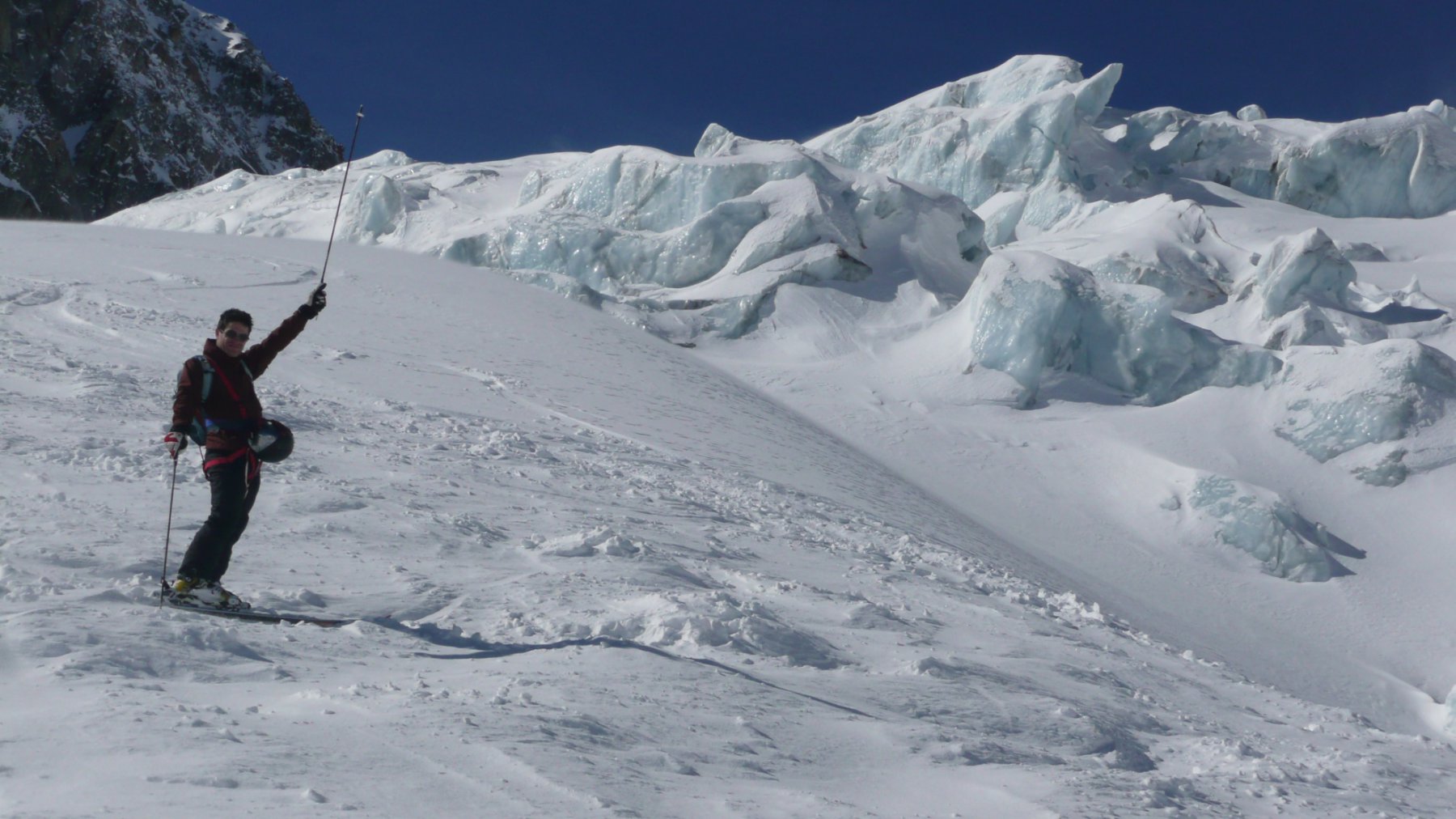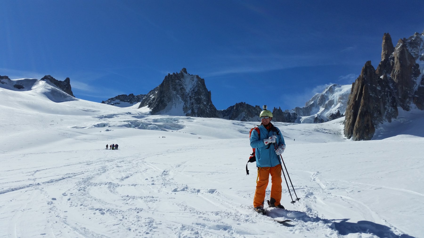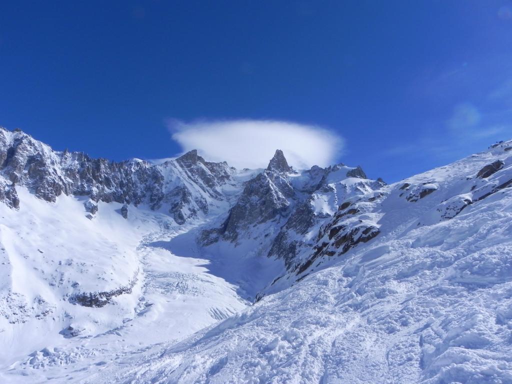 La partenza dall'Aiguille du Midi (3.800m versante Chamonix) aggiunge alla discesa una spettacolarità dell'ambiente che non ha eguali.