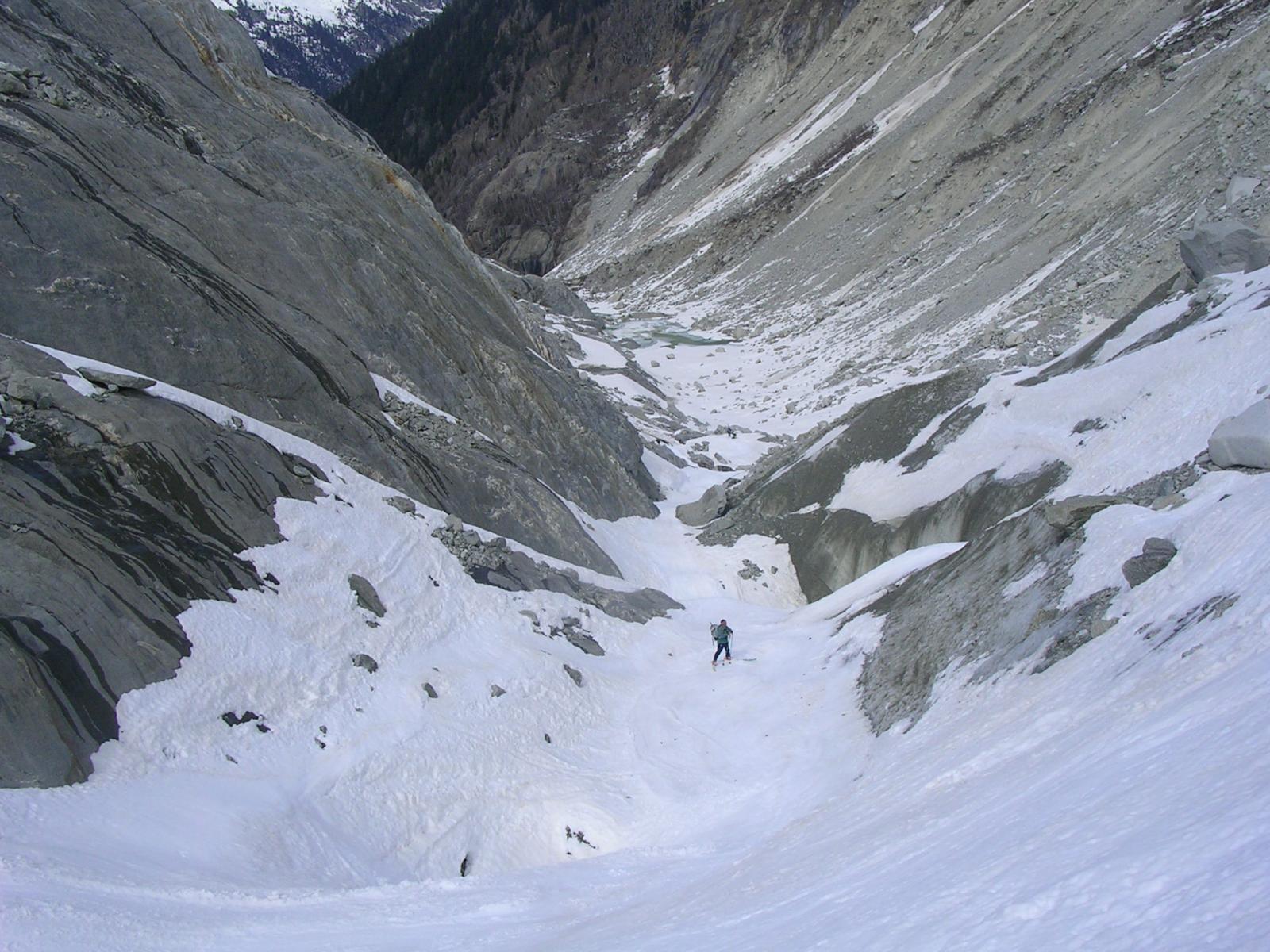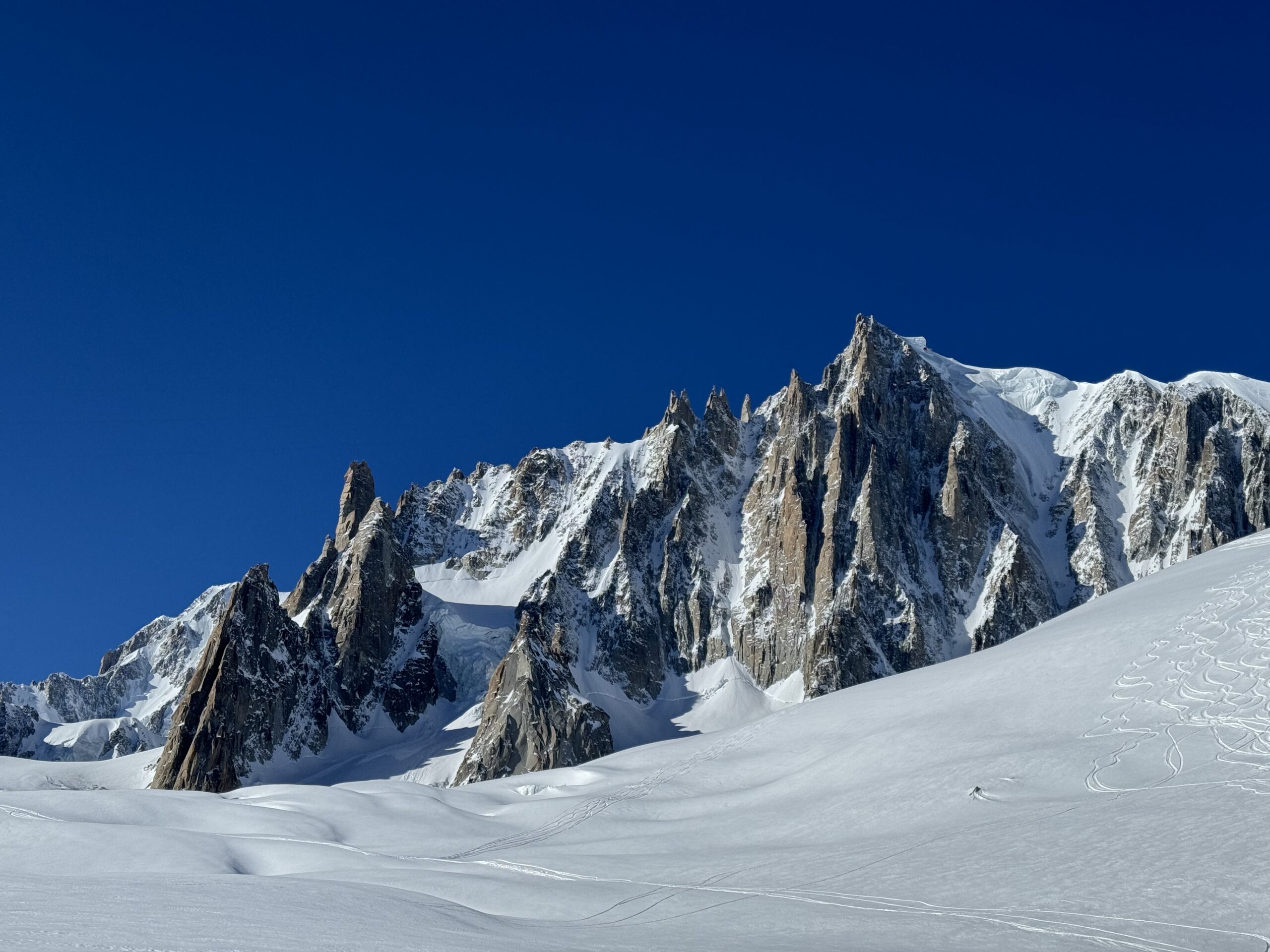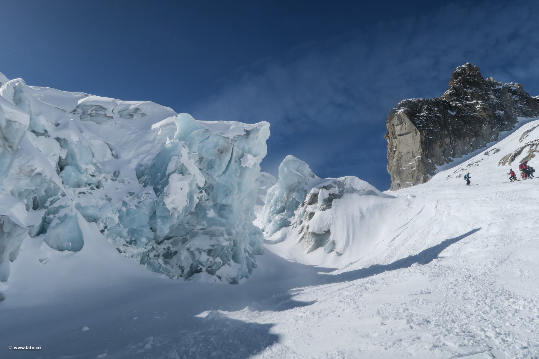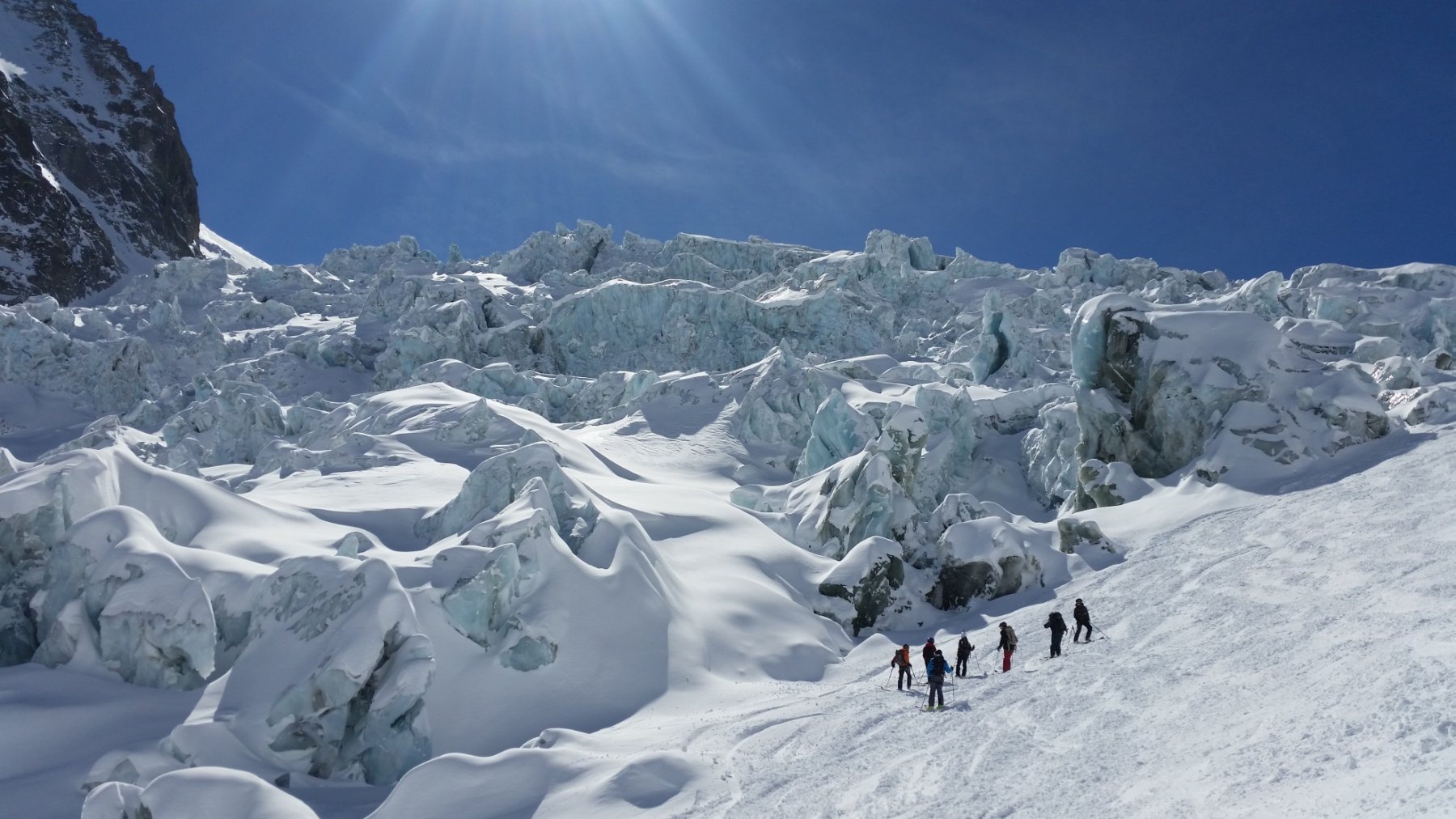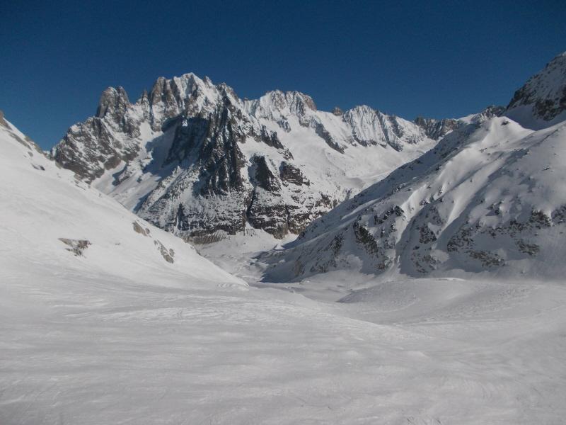 La partenza dall'Aiguille du Midi (3.800m versante Chamonix) aggiunge alla discesa una spettacolarità dell'ambiente che non ha eguali.
