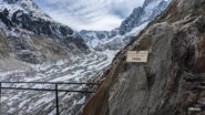 Superata la Salle a manger (ottima zona per una sosta, come suggerito dal nome), sovrastata dalla serraccata e dalle pareti dell’ Aiguilles di Chamonix. Il percorso si fa dolce con scorci indimenticabili sulle Periades, il ghiacciaio di Lechaux, la parete nord delle Grandes Jorasses, il Dru.