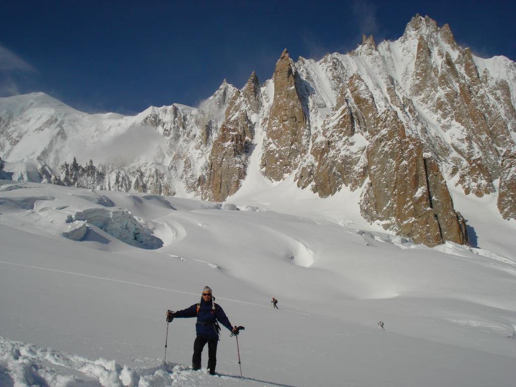 Gita con i colleghi in una Vallee Blanche come non mai per le nevicate abbondanti dei giorni precedenti. Tutta farina, ma non bisogna mai dimenticare di essere su un ghiacciaio e occorre essere sempre molto prudenti, soprattutto nei passaggi obbligati nei pressi dei seracchi. Il percorso era comunque stato già tracciato dalle guide scese di prima mattina e non abbiamo avuto problemi di sorta. Panorami mozzafiato e centinaia di scatti alle più belle vette delle Alpi. Qualche pietra insidiosa lungo la stradina che conduce a Chamonix, comunque ben praticabile.