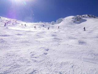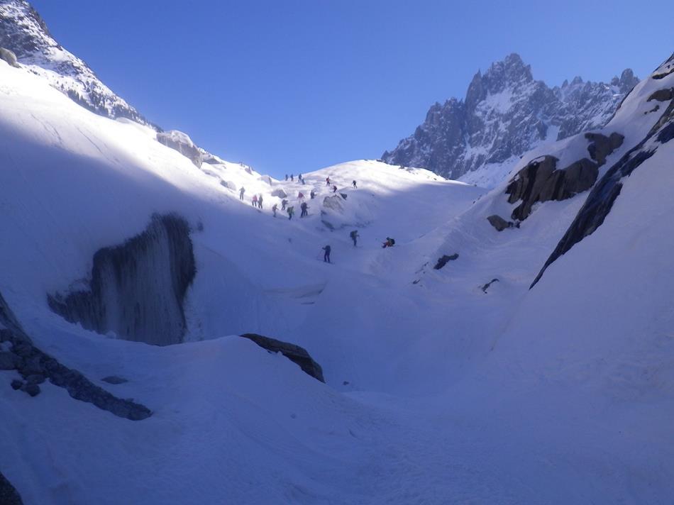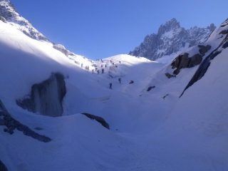 Panorama sempre superbo, giornata spaziale senza una nuvola,solo un pò di vento scendendo dalla cresta dell’Aguille du Midi.