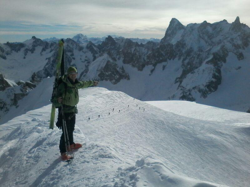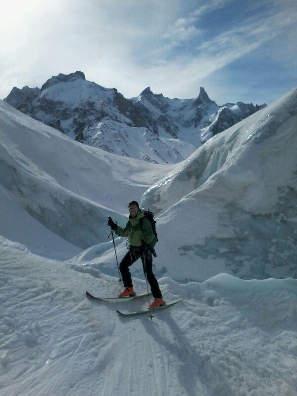 Ambiente sempre strepitoso per la Vallee Blanche. partiti presto con le prime corse della funivia per l’aiguille du Midi. si incontrano vari tipi di neve dalla crosta alla trasformata e un po di farina riportata dal vento. Siamo scesi per la variante “Vraie”, nella parte centrale dove si passano a zig zag dei crepacci. ottima la neve fino alla buvette de Mottes. dopo ci sono almeno 5/6 pezzi da togliere gli sci e da fare a piedi, ma si arrivava bene a chamonix senza camminare tanto. la maggioranza delle persone prendevano il trenino, ma noi per risparmiare…..