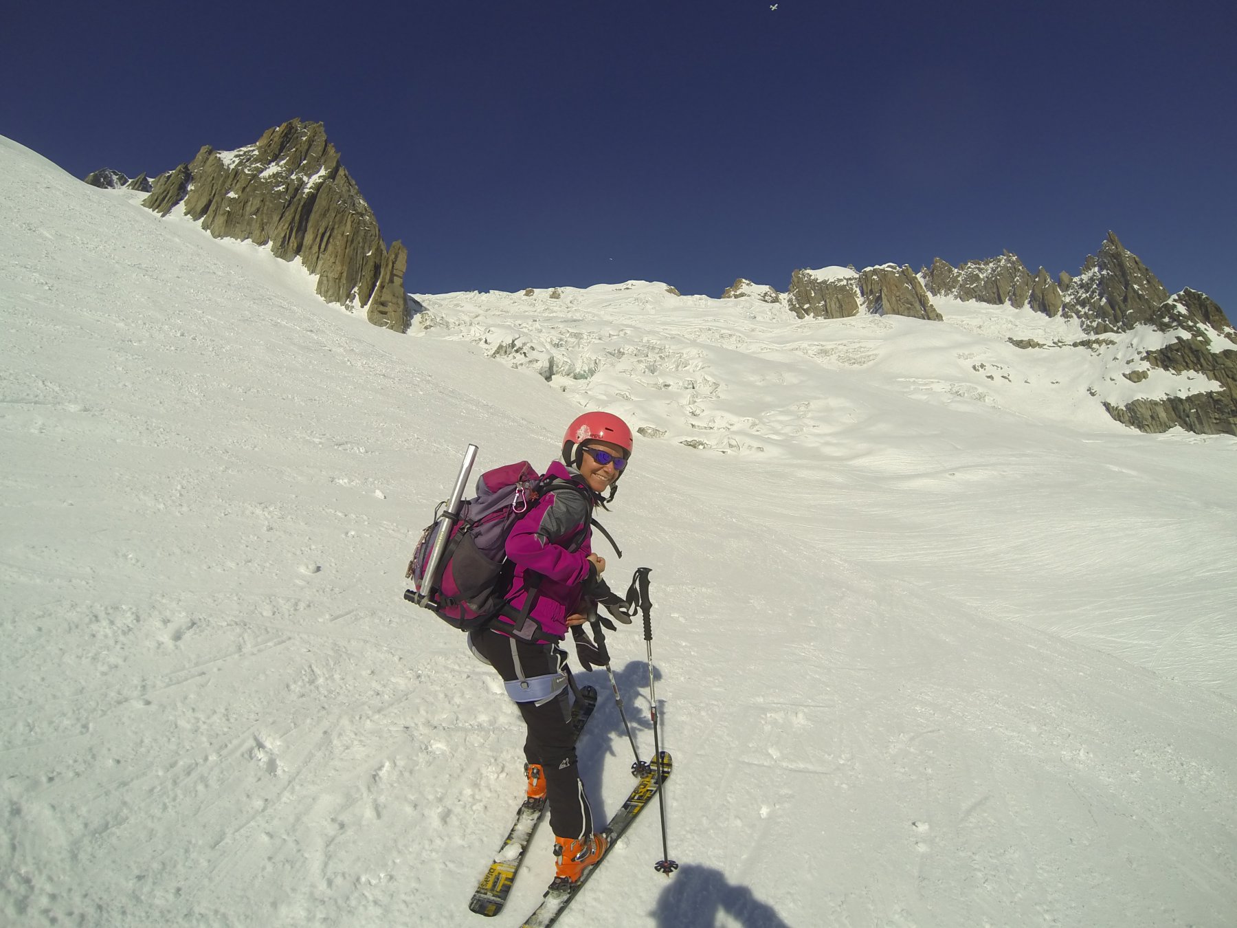 In ambiente grandioso arrivati a Punta Helbronner con la nuova Skyway, scesi su evidenti tracce, crepacci ancora tutti chiusi, neve duretta su traccia, ma appena fuori si pennellava su 15/20cm. di neve ancora fresca nella parte alta fino alla giunzione con quelli che arrivano dall’Aguille du Midi. A metà discesa molte cunette formate dai vari passaggi. Ovviamente non si arriva a Chamonix, leggero portage sul finale per arrivare alla scala per il trenino. Quattro stelle tutte per l’ambiente grandioso, il meteo perfetto senza vento, anzi fin troppo caldo!
