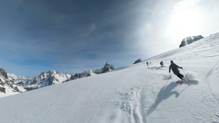 Una Vallèe Blanche improvvisata e tra le migliori di sempre. Polvere in quota, seraccata du Geant con gobbe in farina e arrivo al nuovo impianto sci ai piedi su bella neve primaverile; Giornata FullHd. Sempre un mix tra meraviglia 🤩e tristezza😢 per le condizioni della Mer de Glace dove nella parte finale cadono pietre e massi in continuazione!