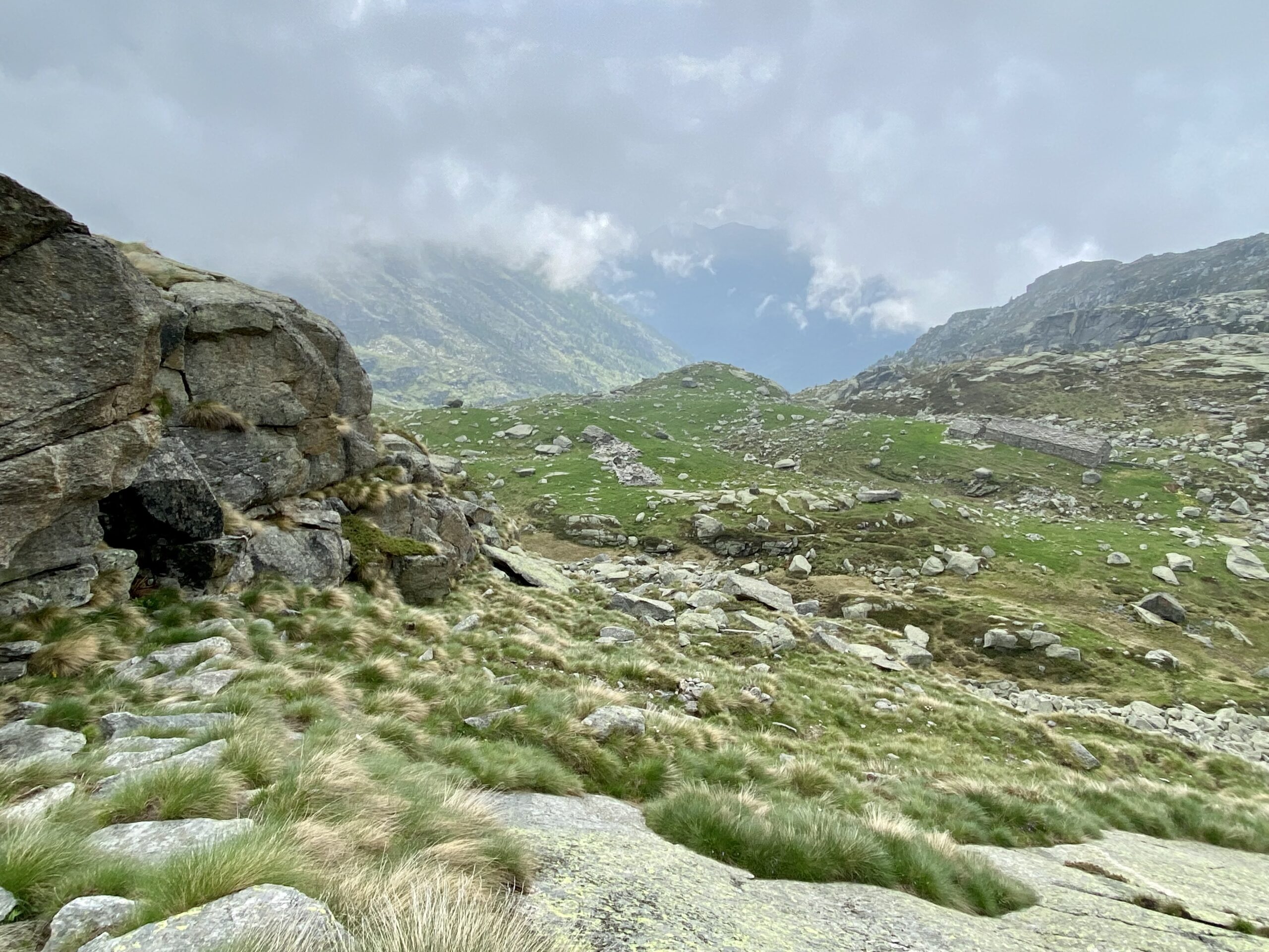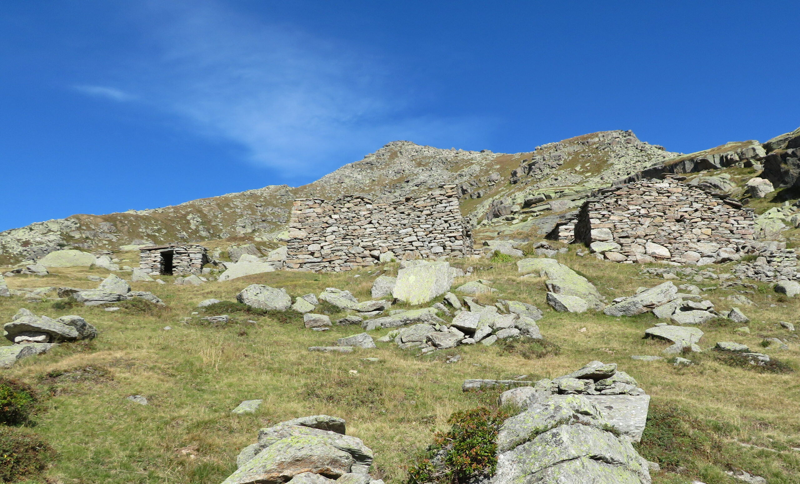 Proseguire ora senza più dubbio in discesa con brevi tratti pianeggianti fino al pian delle Riane(1770 mt~). Superato il piano ritrovare i bolli segnavia n.323 e seguire fino all’alpe Vaccheria (1630 mt).