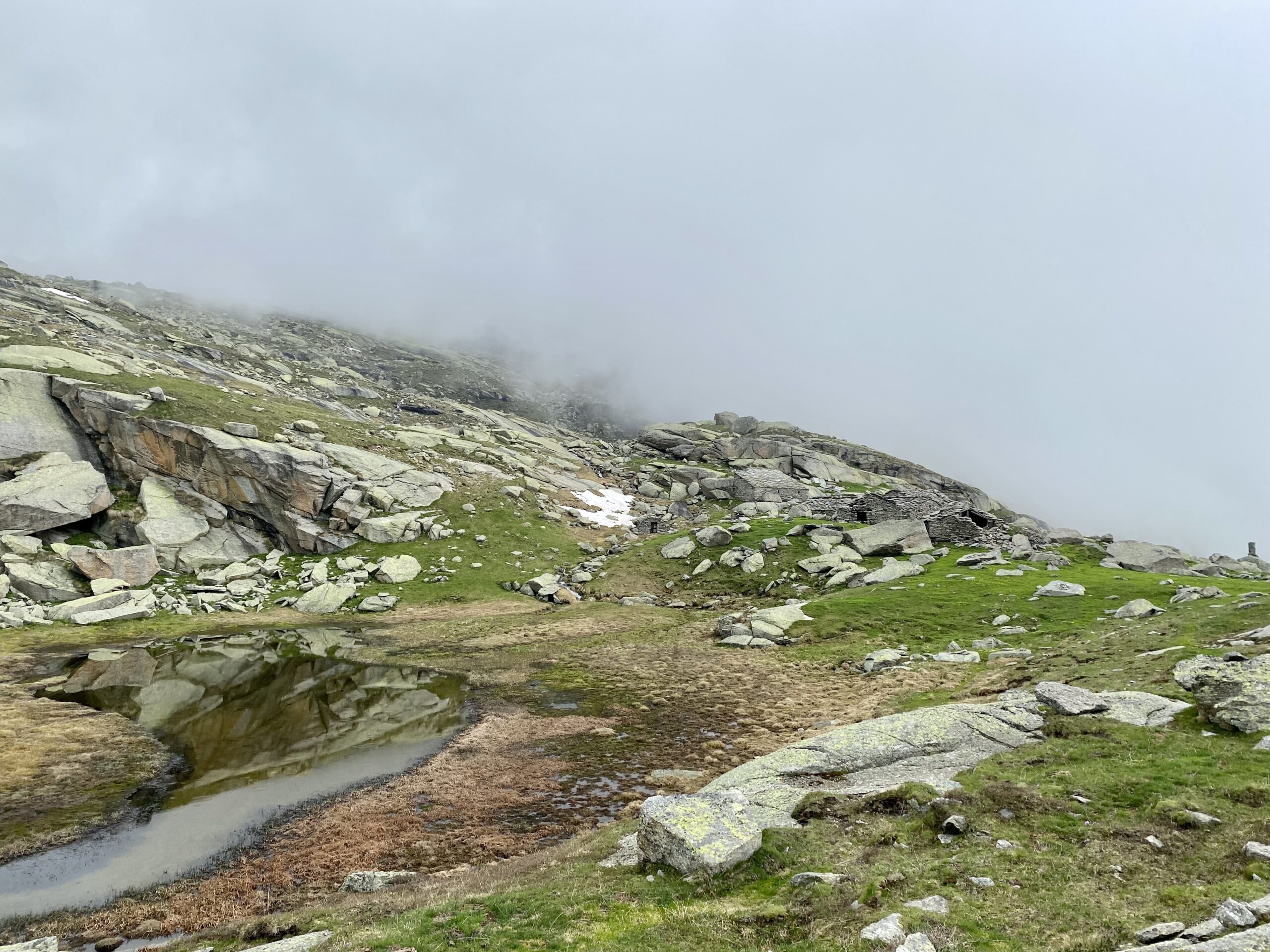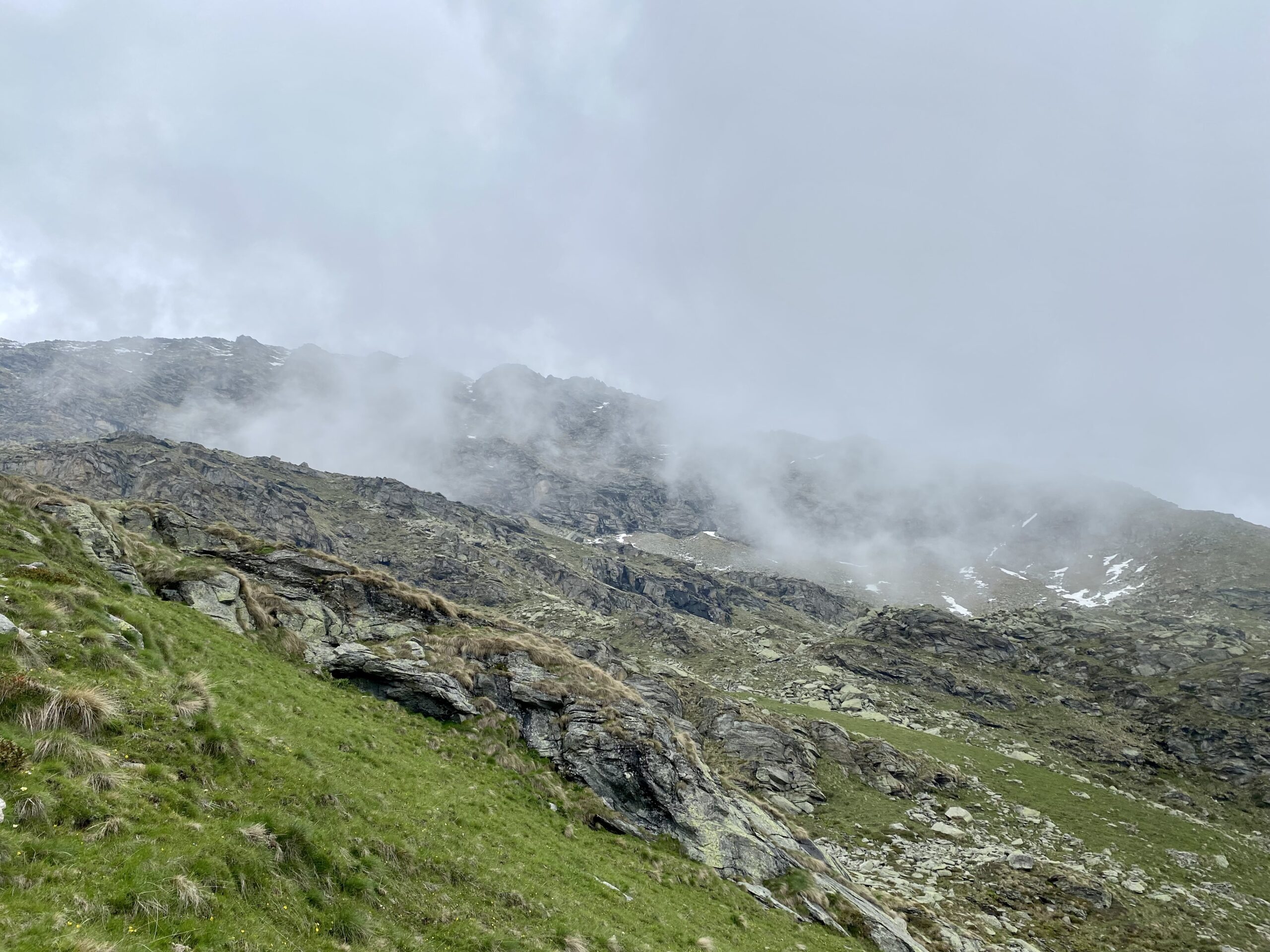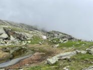 Da Rivotti imboccare il sentiero GTA321 e proseguire pedestramente fino a Gias Nuovo (2312 mt); superato di 200mt~ in prossimità di svolta in salita a sx, ancora nel piantetto abbandonare il GTA e “mirare” all’ evidente Gias Massa su labile che traccia che da qui in poi però diventa evidente e proseguire ora anche con stretti tornanti fino al colle della Valletta (innominato sulle carte) o quota 2498 su carta n.103 IGC (2507 mt su gps), posto sullo spartiacque tra i 2 valloni.