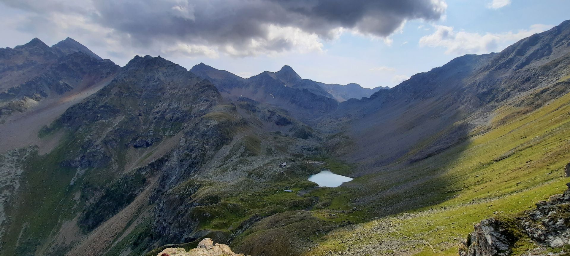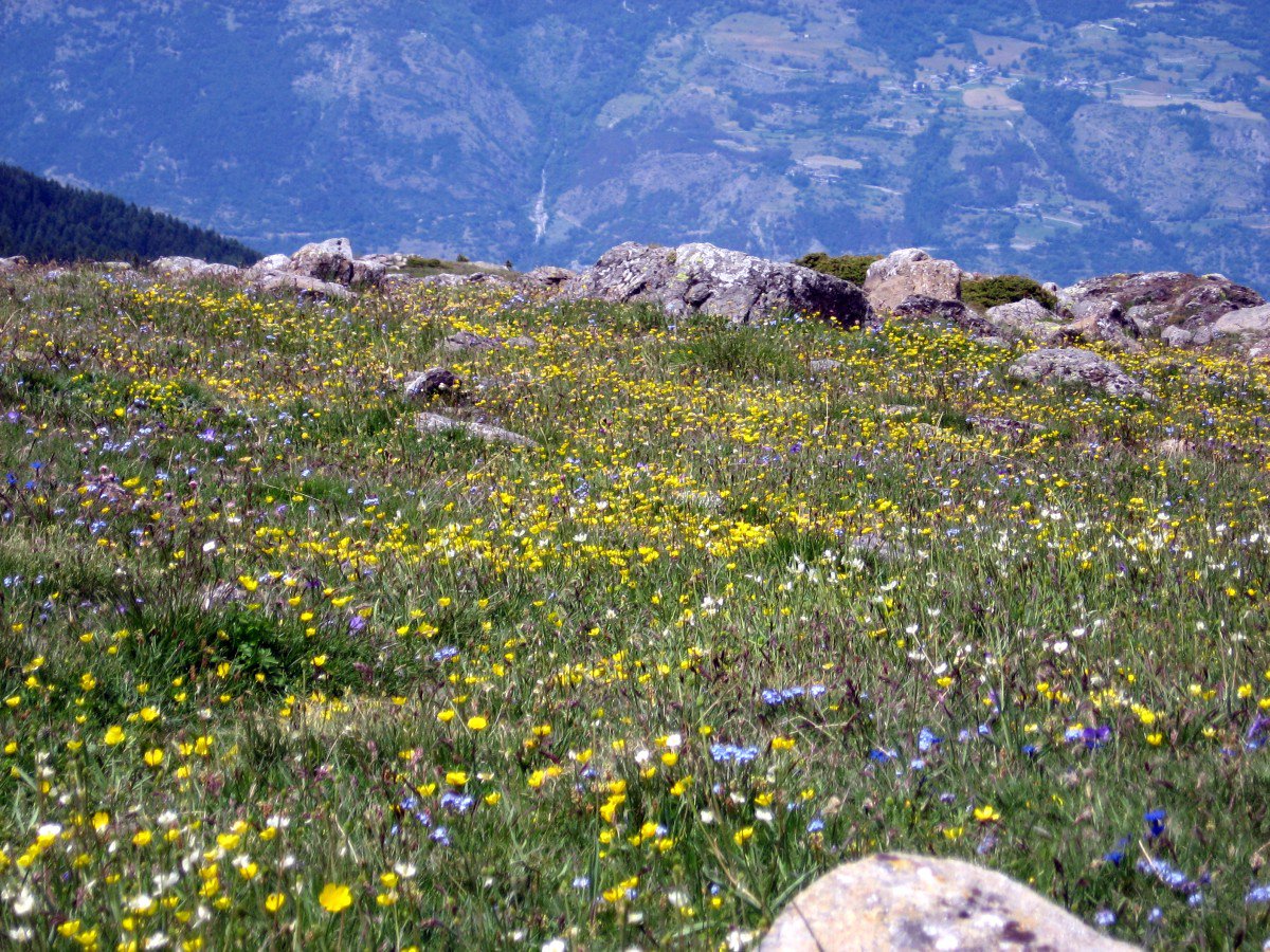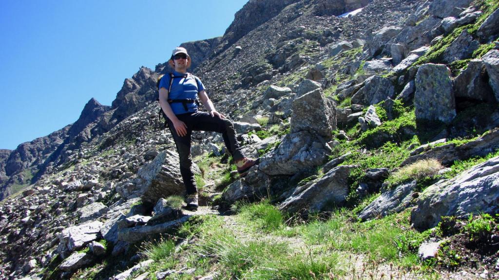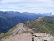 Si percorre una traccia di sentiero ora più ripida, sul costone erboso di sinistra, che in breve conduce ad un poggio dove inizia la parte attrezzata del sentiero panorama a circa 2900 m.