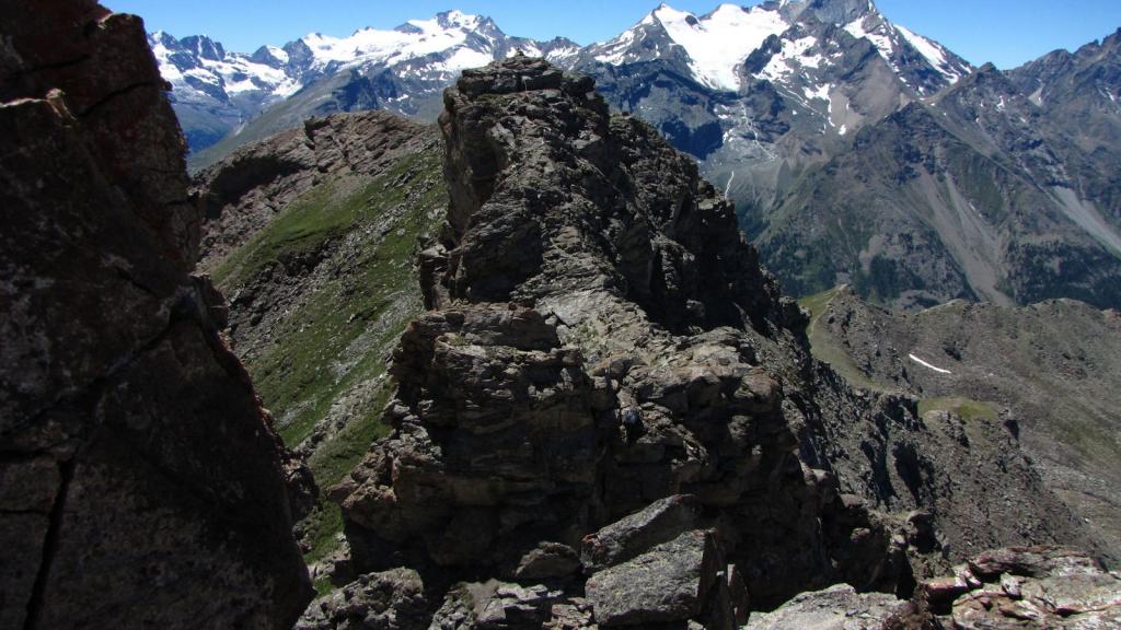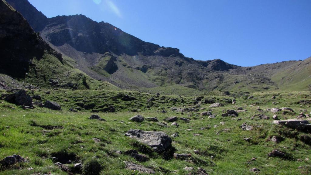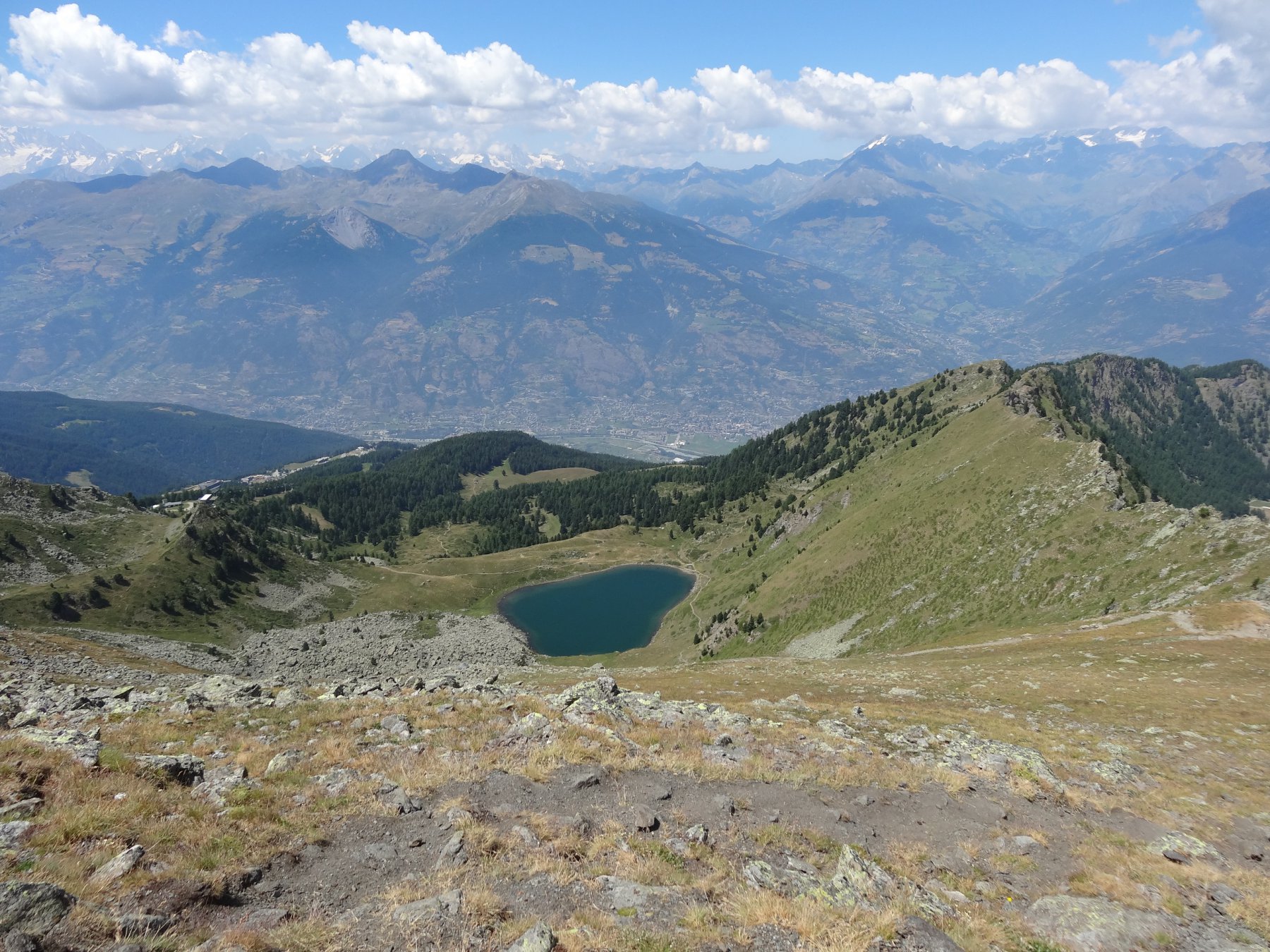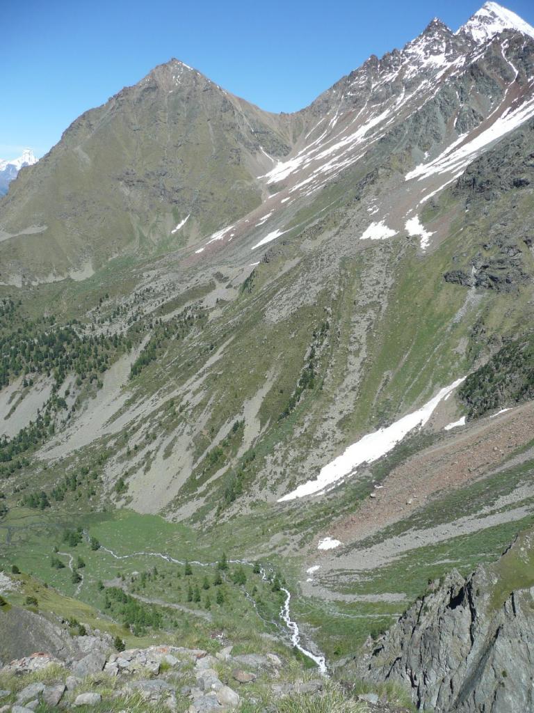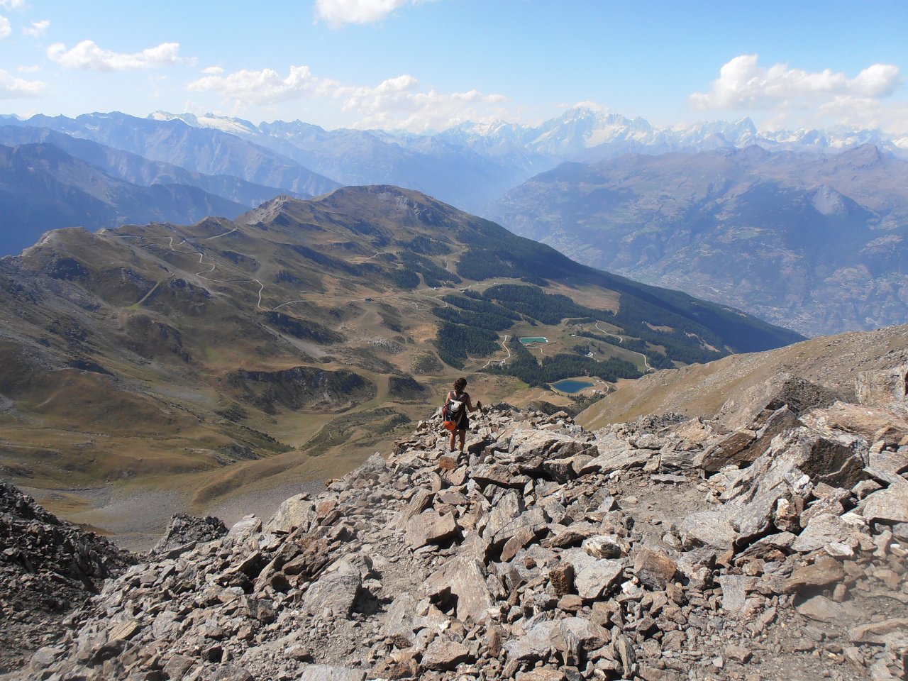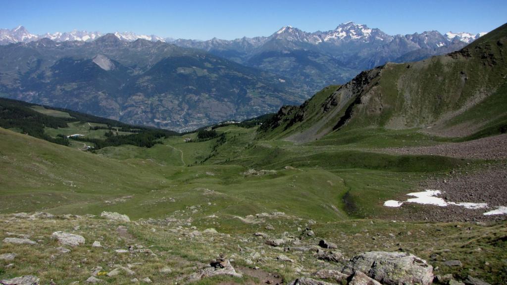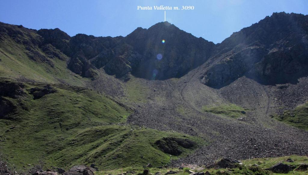 La discesa dalla Punta Valletta avviene dal percorso escursionistico, scendendo dal sentiero 19A ben segnalato che ne percorre il crestone nord, dapprima pietroso e un po’ disagevole, poi diventa più scorrevole nei pressi del Mont Belleface (modestissima elevazione che si può toccare senza fatica alcuna).
