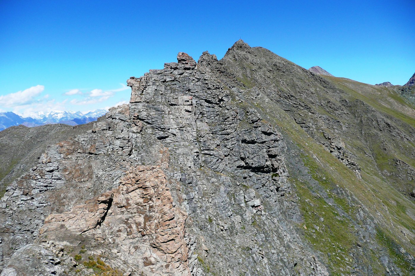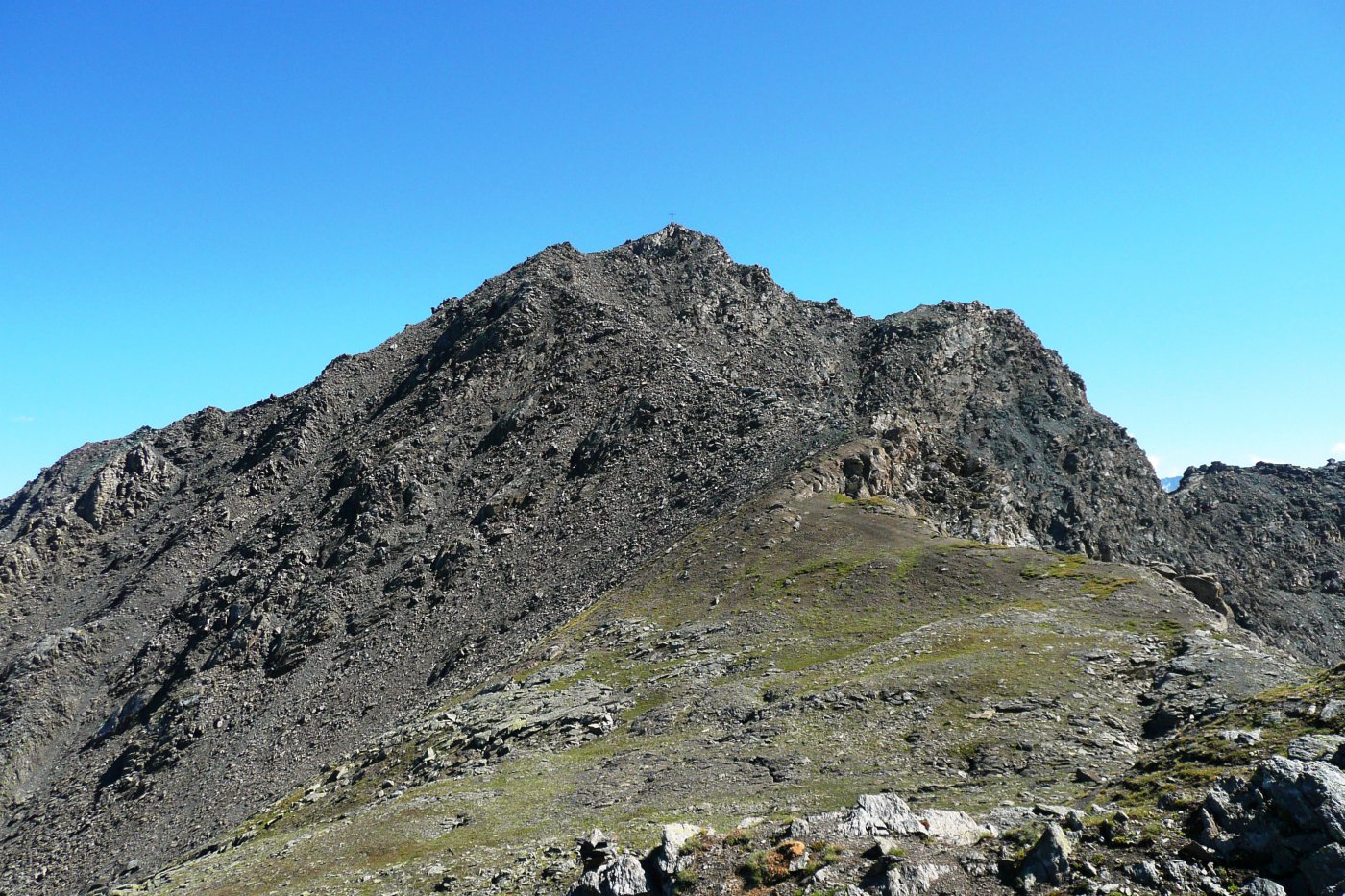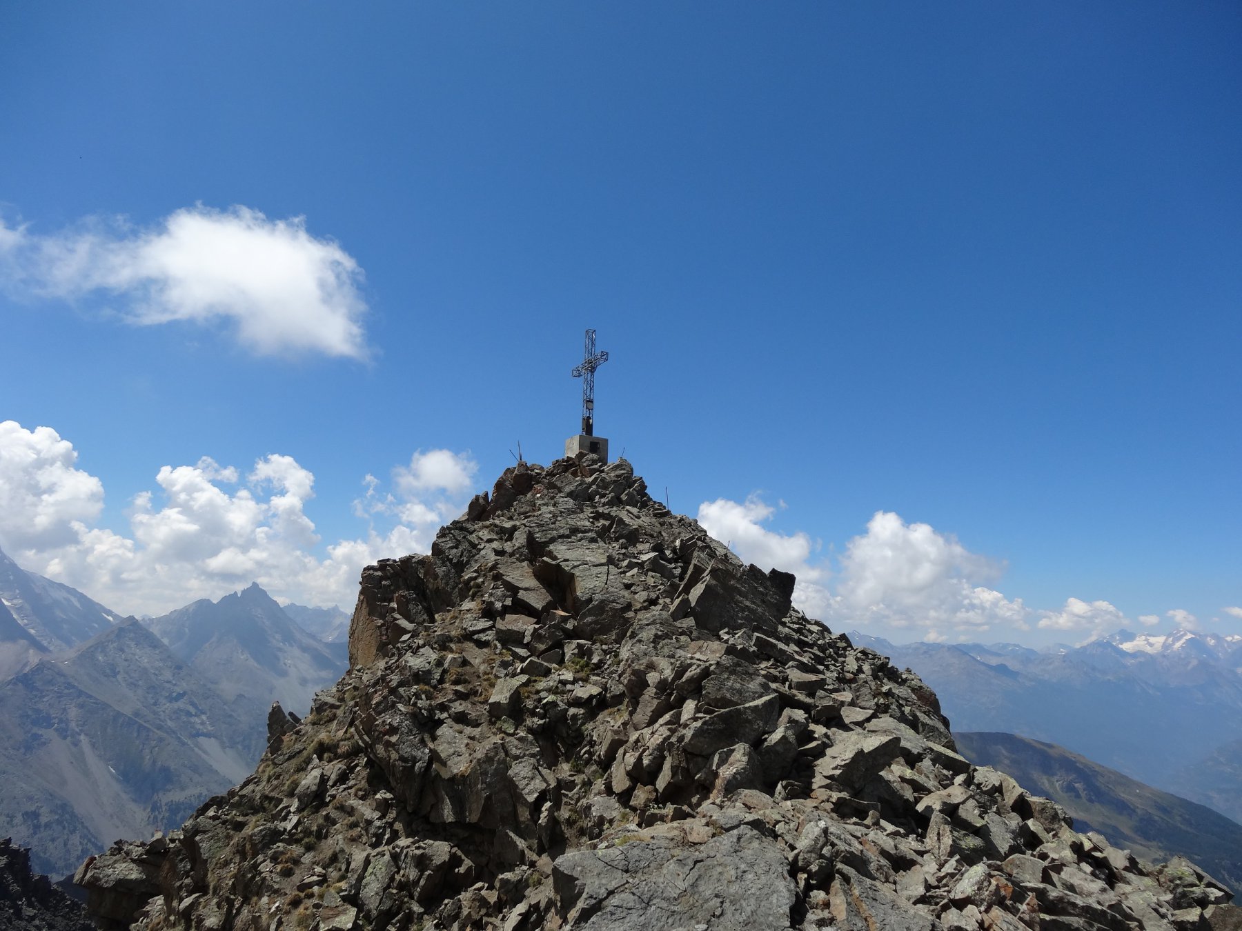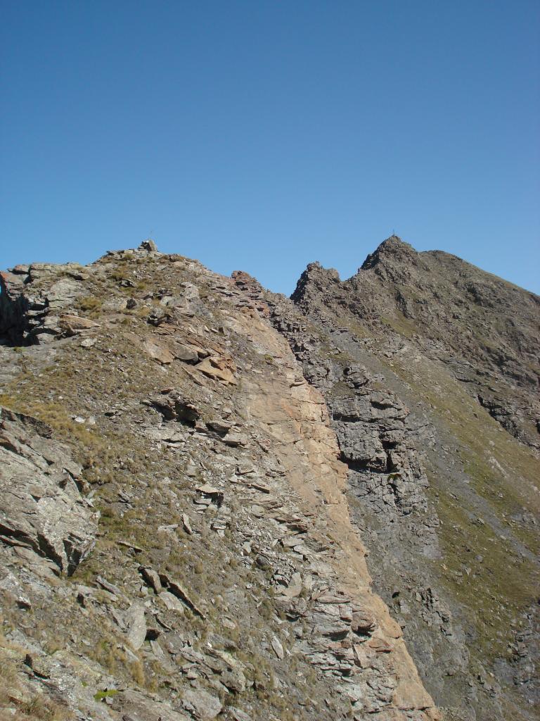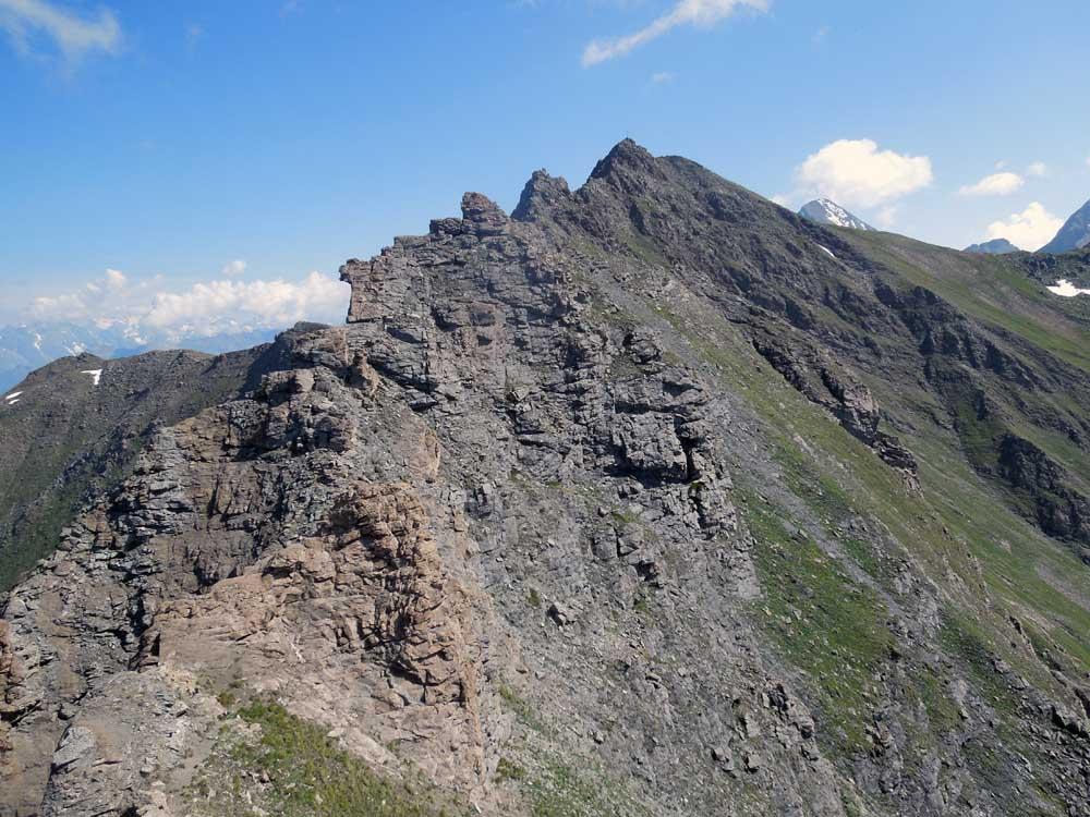 La parte conclusiva in vista della cima, risale più ripidamente la cresta rocciosa e sbuca proprio in corrispondenza della croce di vetta 3088 m, dove termina la ferrata.