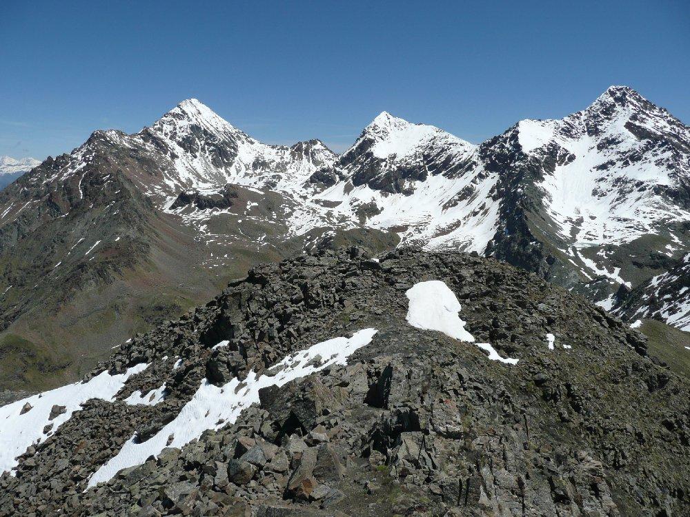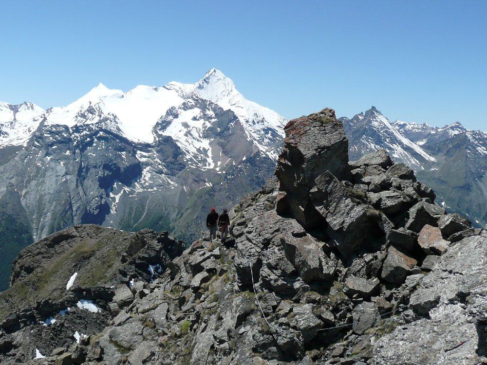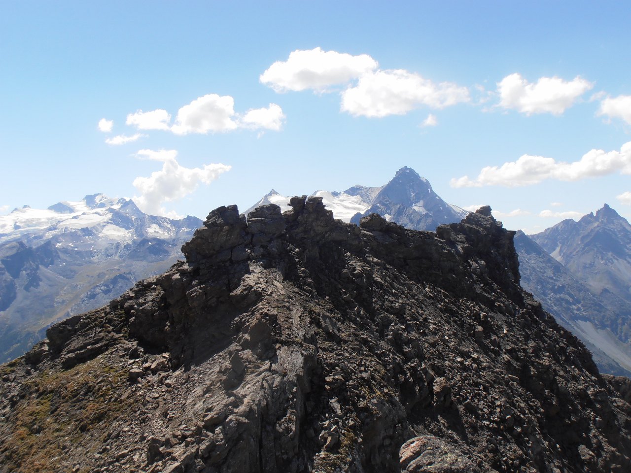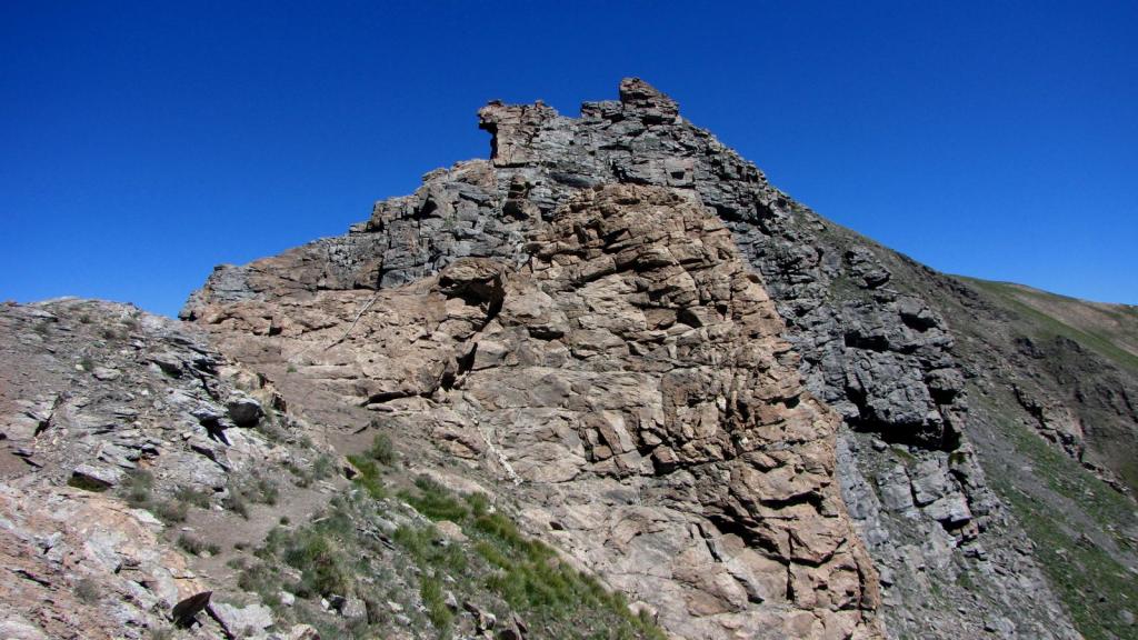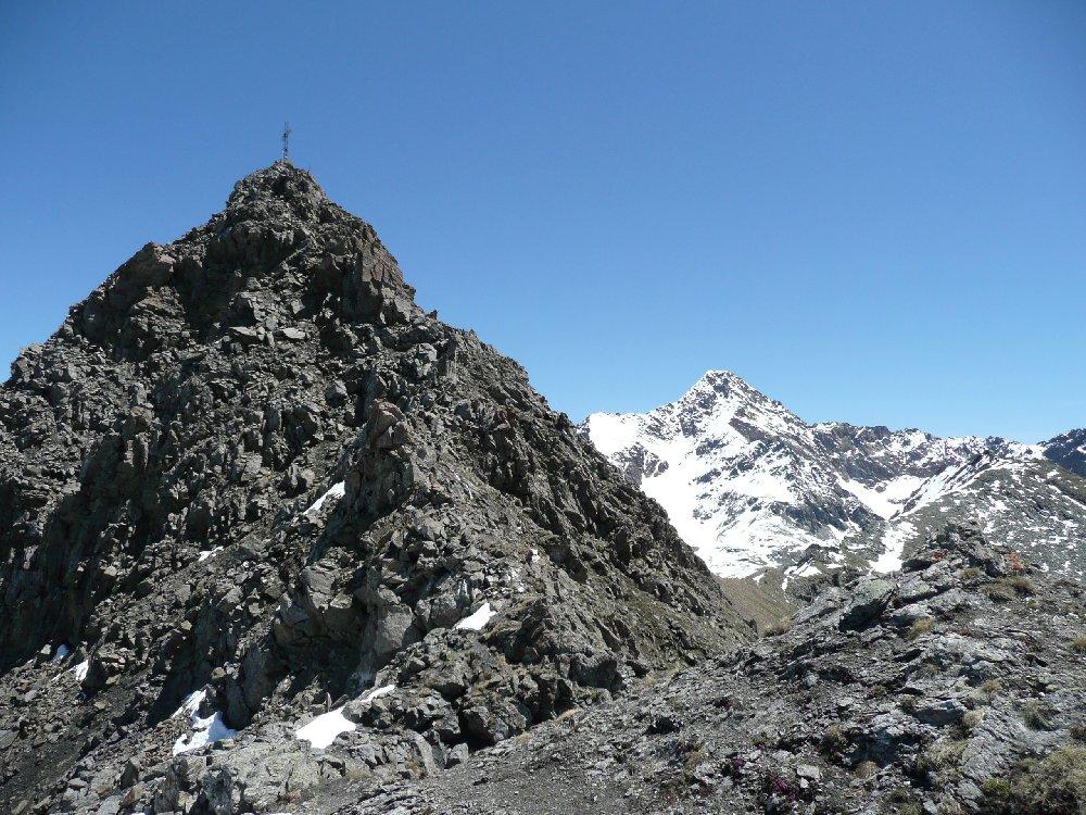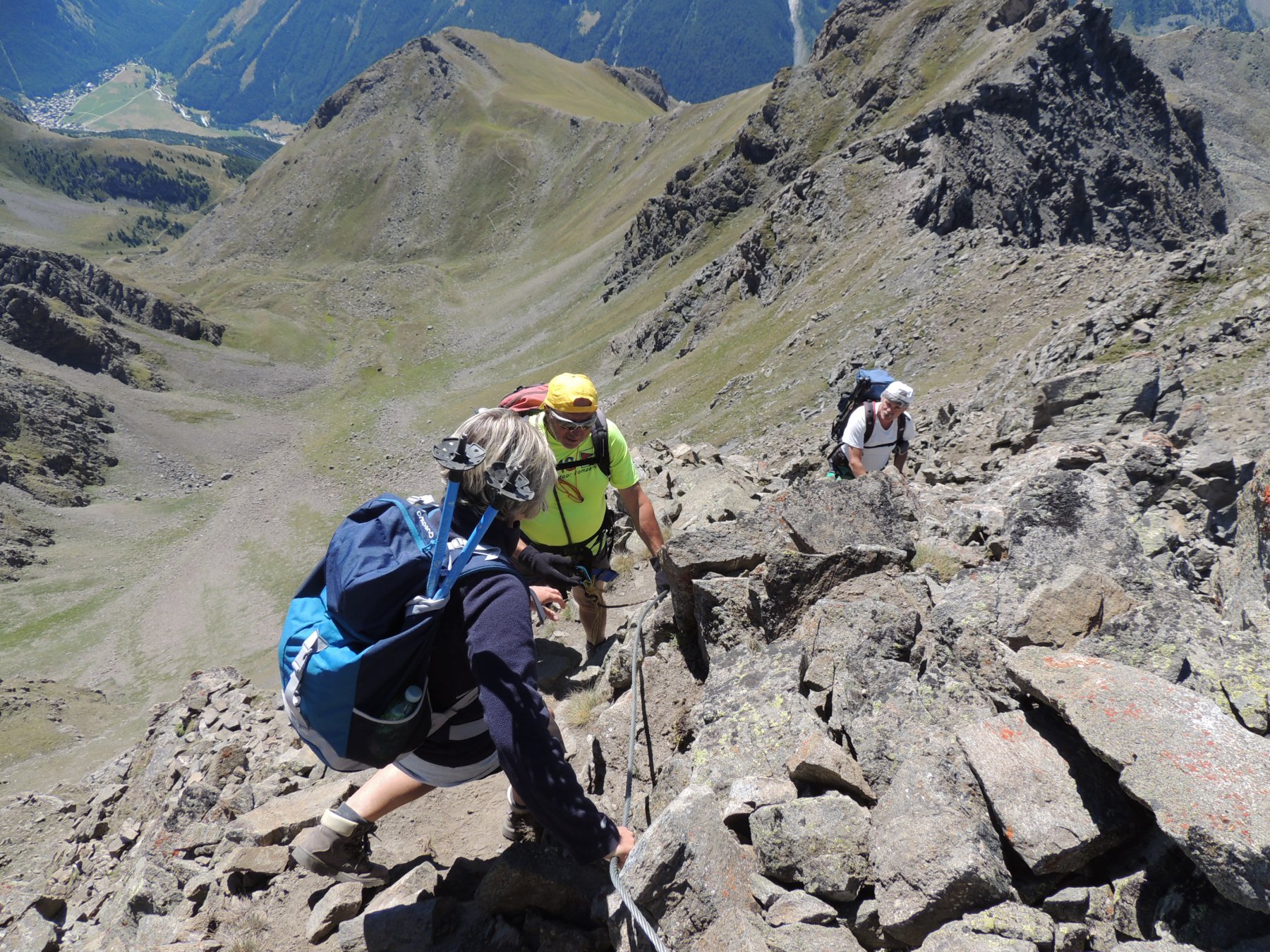 La parte conclusiva in vista della cima, risale più ripidamente la cresta rocciosa e sbuca proprio in corrispondenza della croce di vetta 3088 m, dove termina la ferrata.