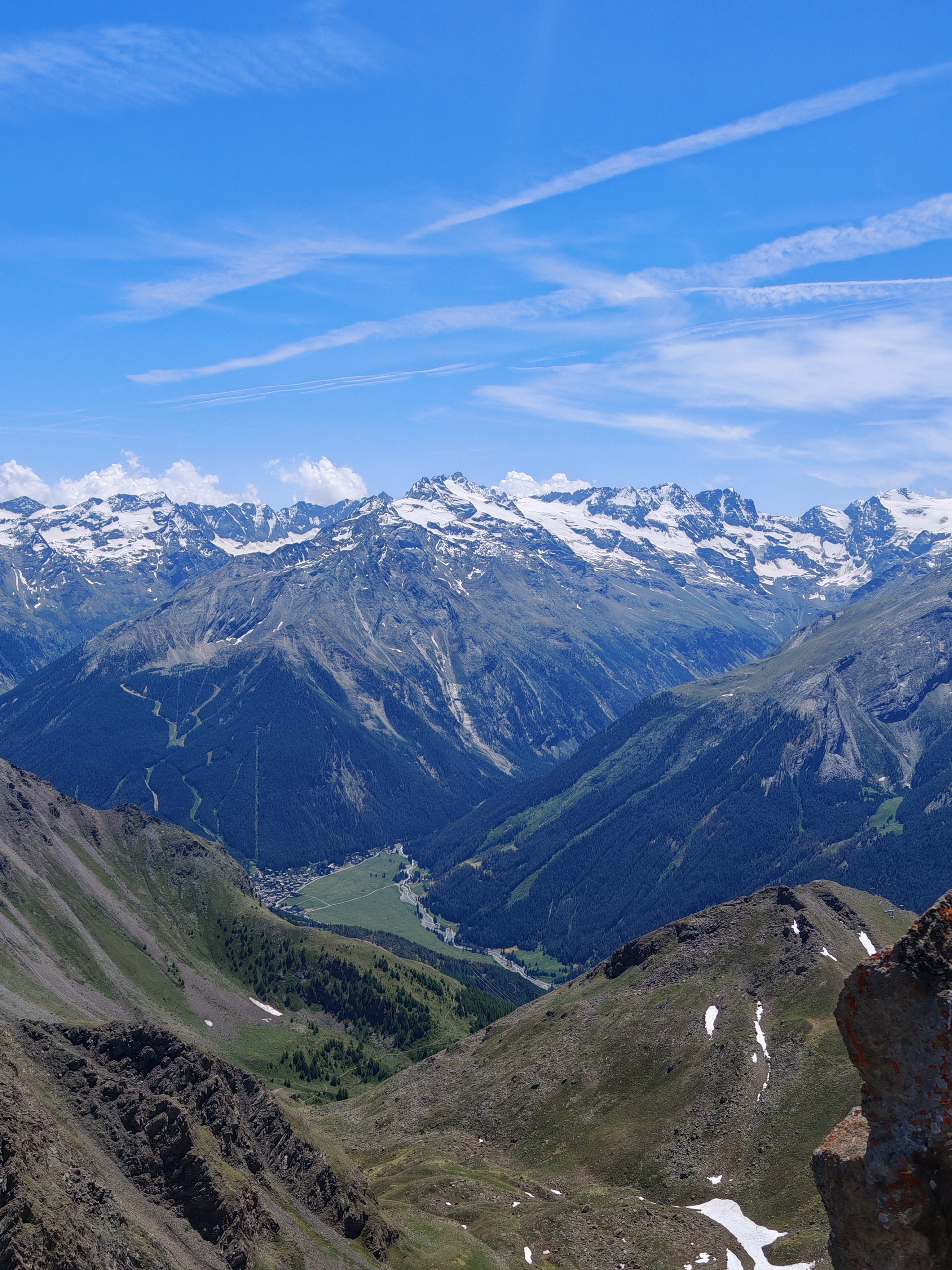 Dalla stazione di arrivo si segue il sentiero sulla destra, con indicazioni per il Colle Tsa Seche, percorrendo una stradina sterrata in leggera discesa per alcune centinaia di metri fino a Pian dell’Eyvie. Qui si incontra il sentiero, a sinistra, che risale al centro della valletta in direzione dell’evidente colle Tsa Seche, che si raggiunge senza alcuna difficoltà a 2810 m. A sinistra si tocca in alcuni istanti anche la Punta Tsa Seche 2824 m.