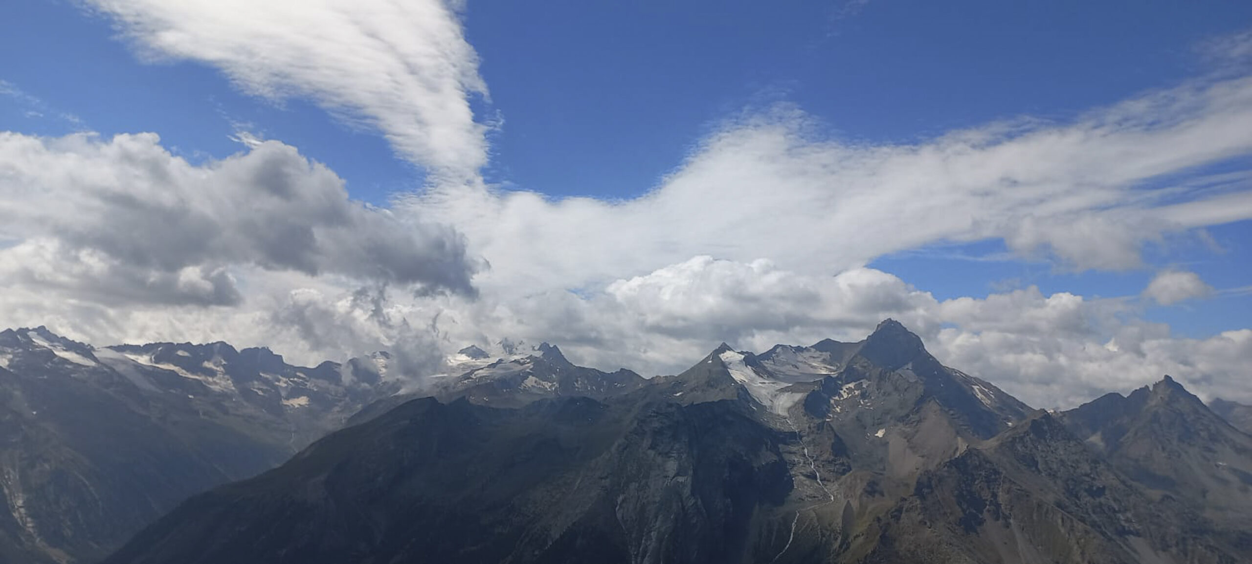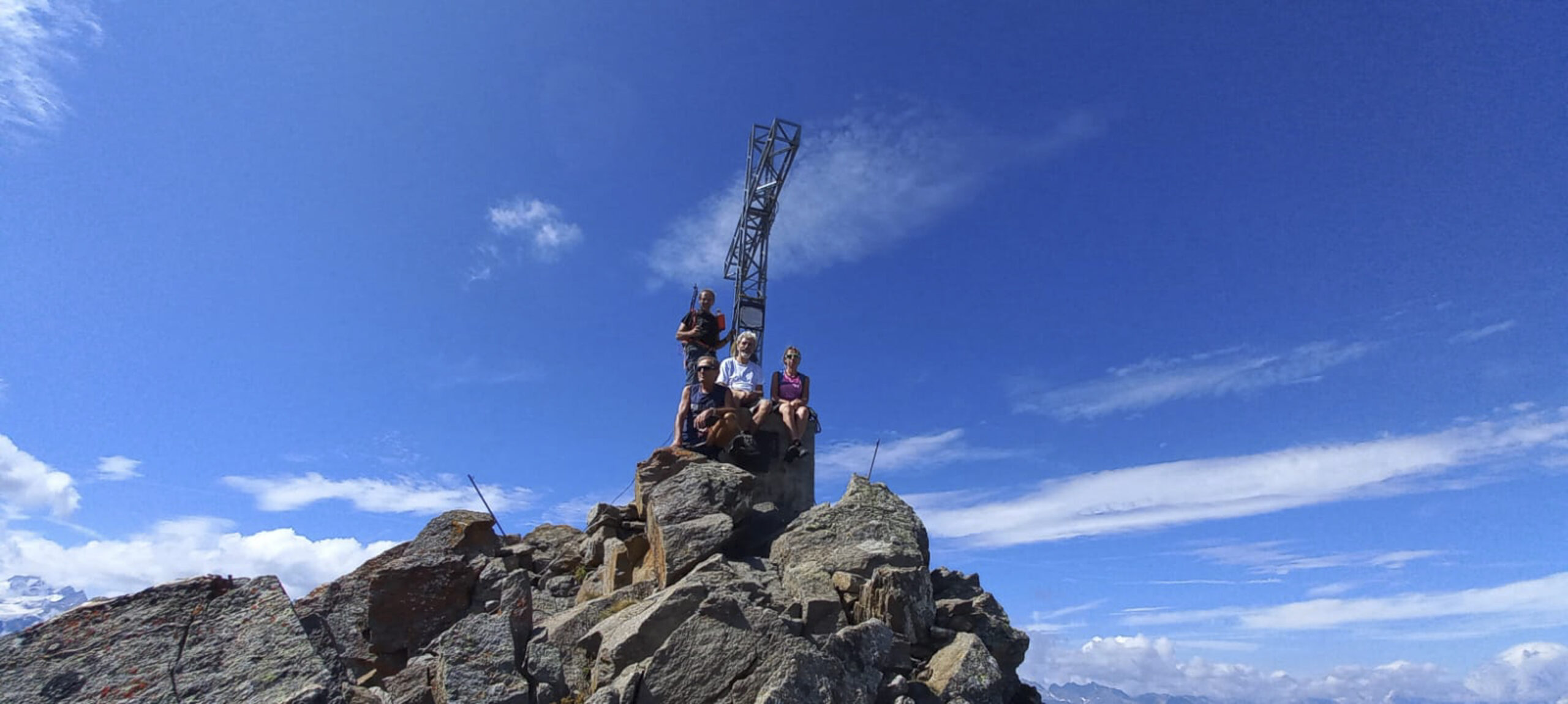 Bella punta molto panoramica anche se malgrado la bella giornata il panorama verso il Monte Bianco non era perfetto. Grivola e Emilius e Granpa in primo piano. Con Audrey, Vichi e Giovanni saliti dal sentiero attrezzato e scendendo poi dalla via normale compiendo un bellissimo anello.