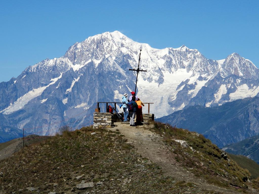 Raggiunto il colle Chamolè, si continua in salita per un tratto un po’ disagevole di detriti e roccette, problematico solo con neve o ghiaccio, fino a raggiungere la spalla erbosa con la Croce della Valletta.