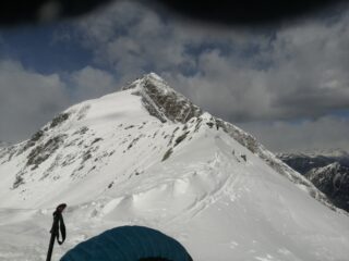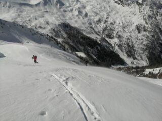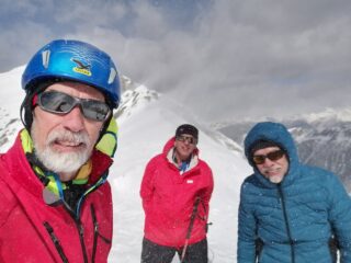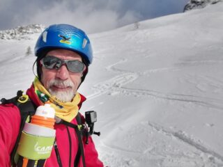 Domenica 14, val Tartano, con sorpresa mattutina di una bella spolverata di neve. Cima Vallocci o quasi, fermati al passo di Dordonella per il forte vento che ci ha accompagnato per tutta la gita con folate notevoli in alto. Seguito la traccia di due skialp molto a sinistra sui residui di grosse slavine, non sempre agevole. La neve nuova ha facilitato la progressione sul fondo duro e talvolta ghiacciato. Sopra le baite il vento ha creato accumuli e sastrugi. Al passo rapido cambio di assetto e discesa con nevi varie: fresca, accumuli, ventata ma in complesso una buona sciata fino al piano e alla strada, sci ai piedi fino all’auto oltre il sottopasso. Altri 5 sull’itinerario, molti verso il passo di Tartano. Con Alberto e Luigi.