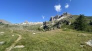 Si prosegue per un breve tratto su asfalto, poi si imbocca a sinistra un panoramico sentiero-balcone, da percorrere spingendo la bici e in alcuni tratti in sella, fino allo Chalet Forestier. Da qui si continua sempre a spinta fino a raggiungere il Colle di Thures.