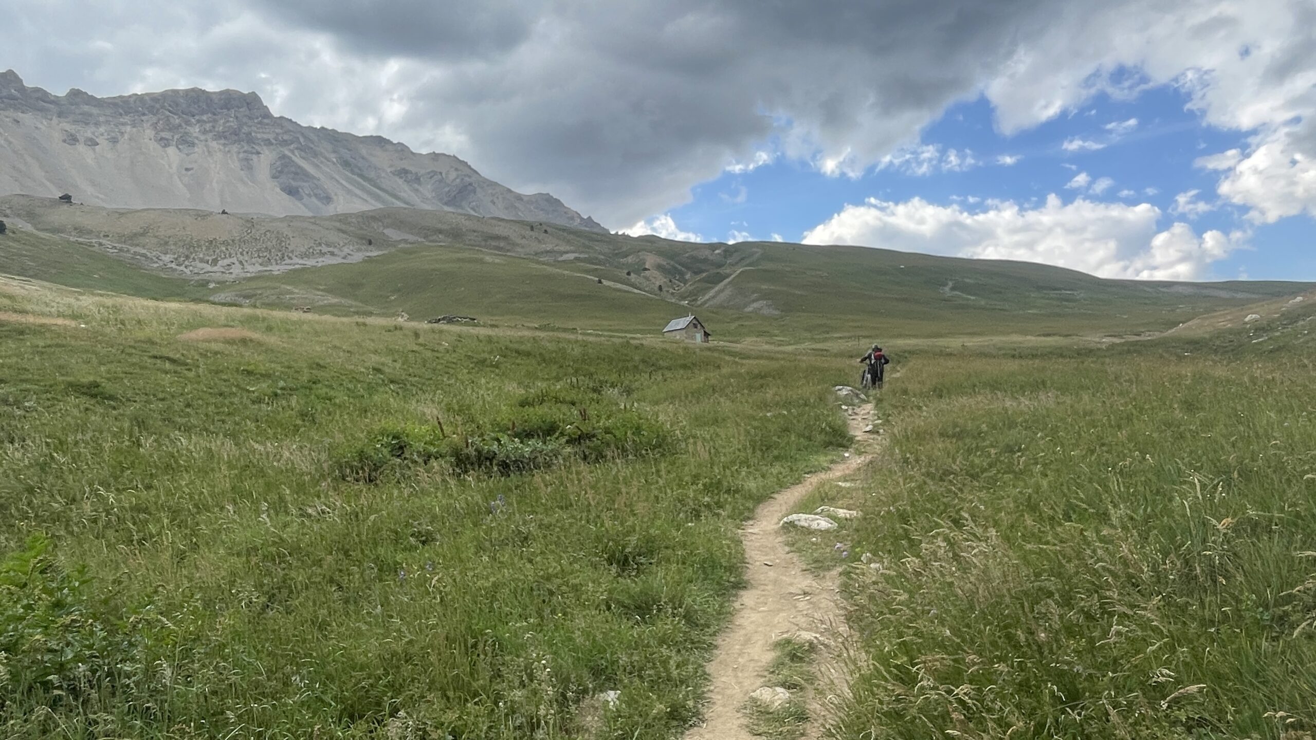 Dal colle si affronta una lunga e piacevole discesa verso Névache, passando per la Chapelle Saint-Michel. I sentieri e i prati sono per lo più ciclabili, con alcuni tratti tecnici ma mai eccessivi.
