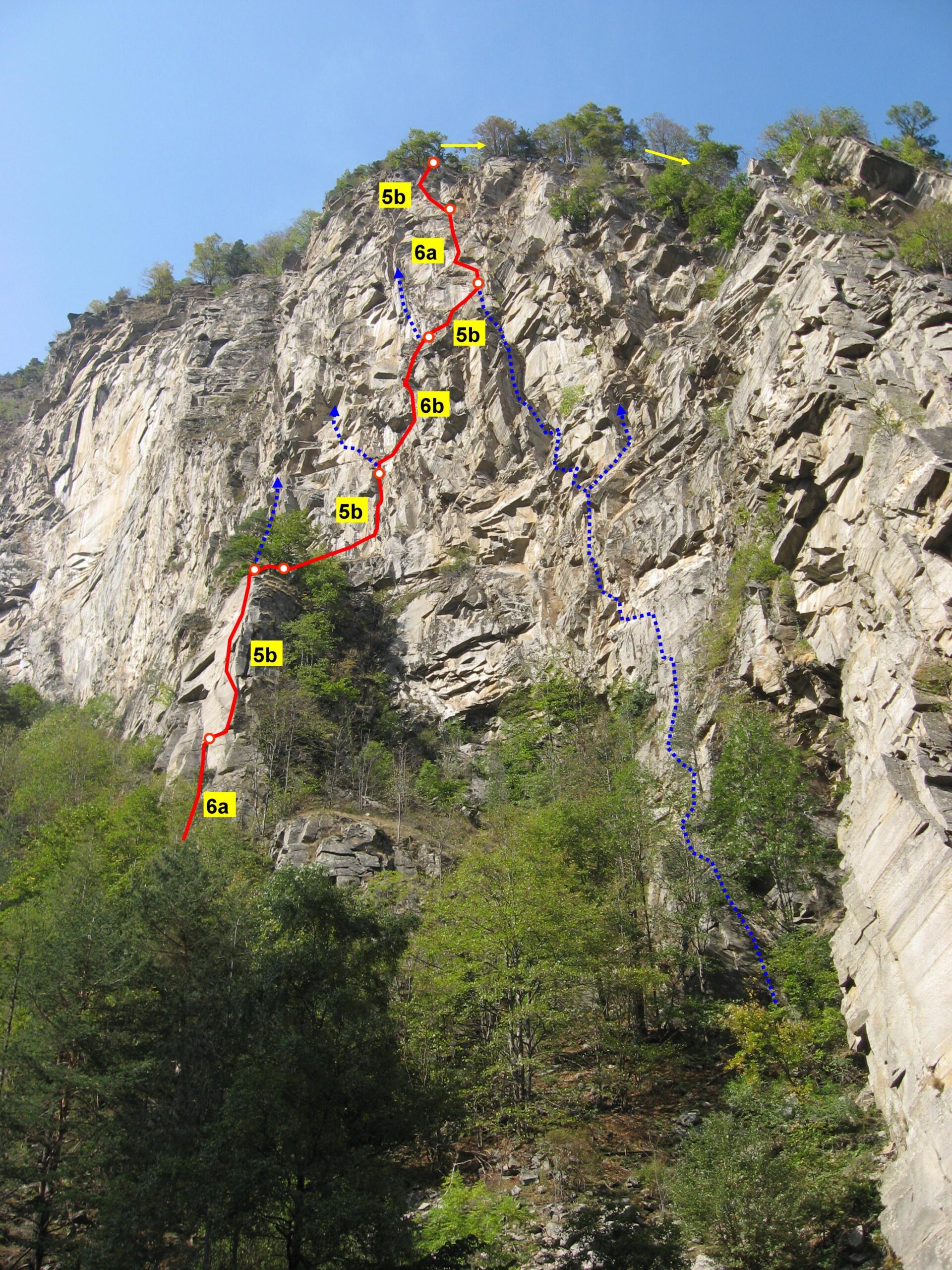 Si tratta di un concatenamento che permette di superare in diagonale la parete degli strapiombi sfruttando i punti di maggior debolezza della parete.