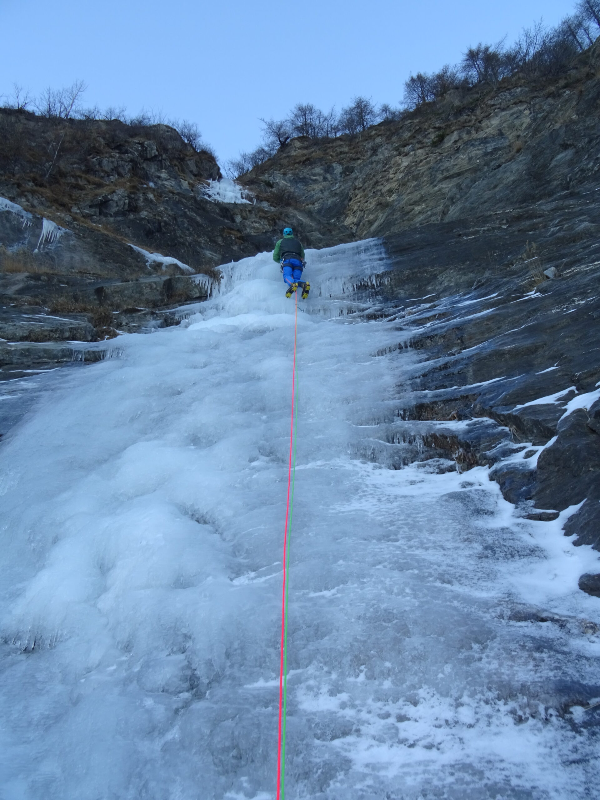 Finalmente un’altra perla delle nostre valli, primi 2 tiri al socio e poi a me il tiro finale: bellissimo e delicato. Cascata sicuramente non grassa ma salibile, da non lasciarsi scappare. Discesa comoda con 3 doppie (soste in posto ancora buone).