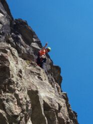 Volendo si può fare un paio di monotiri trad sulla sinistra della struttura su grado molto facile 3/3+ utilizzando micro dadi o nut ball.