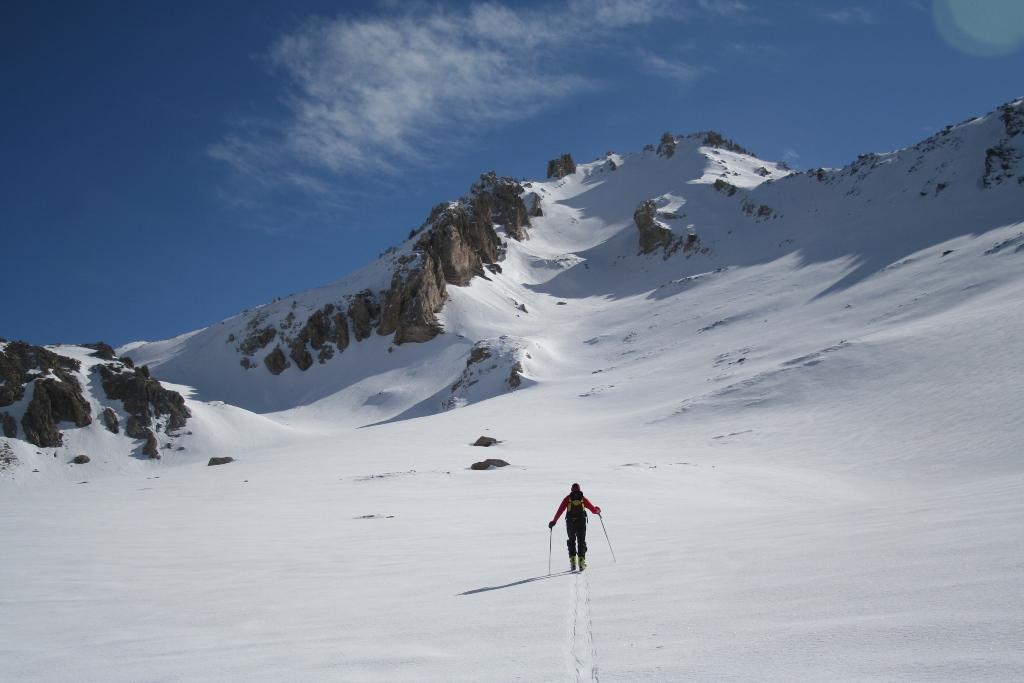 Portarsi sulla spalla a dx del canale e risalirla sino a circa 200 metri dalla vetta.