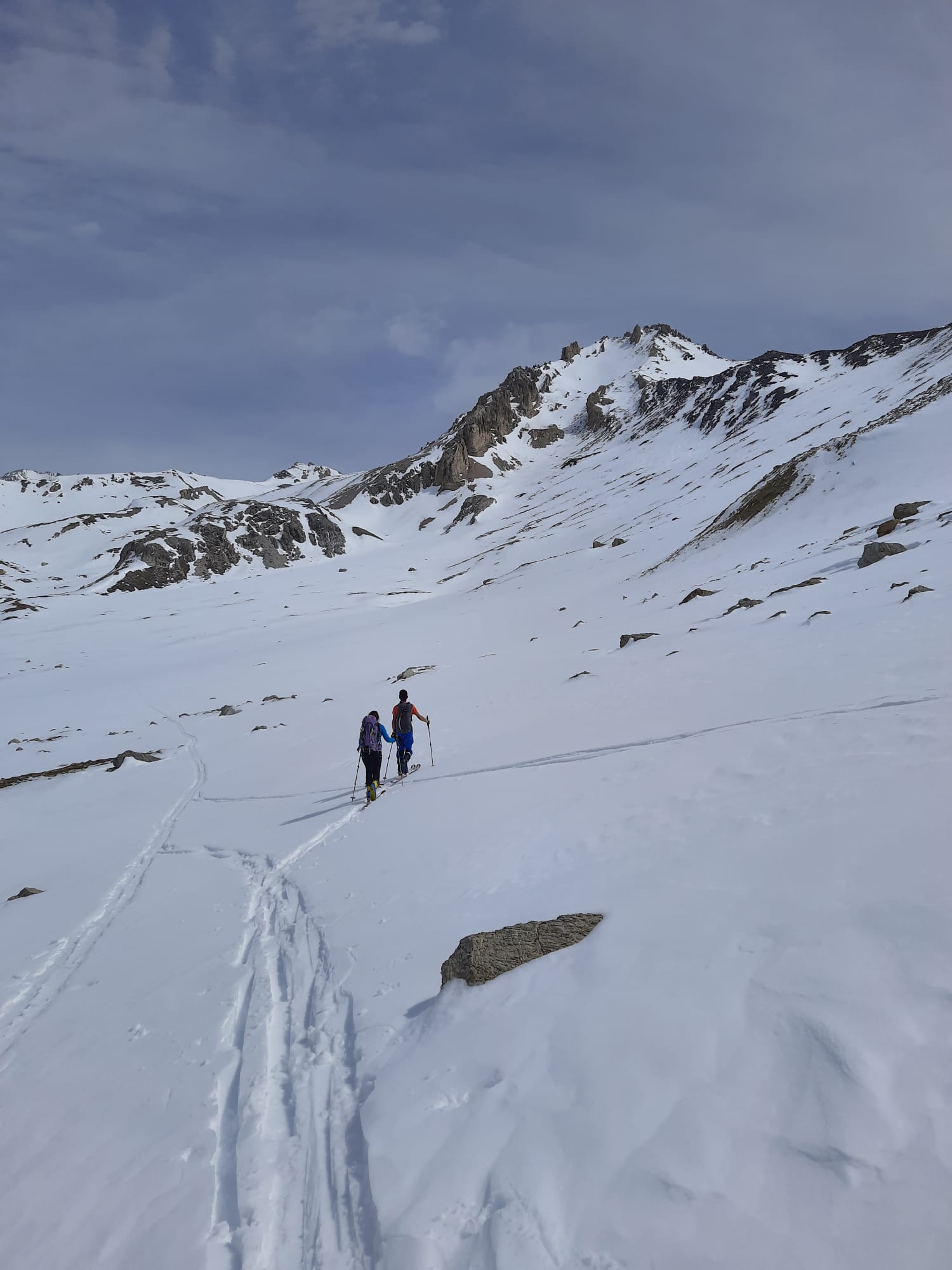 Seguire il lunghissimo pianoro al termine del quale si inizia a risalire sulla dx i pendii verso la cima del Vallonetto tenendosi a dx dell’evidente canale N .