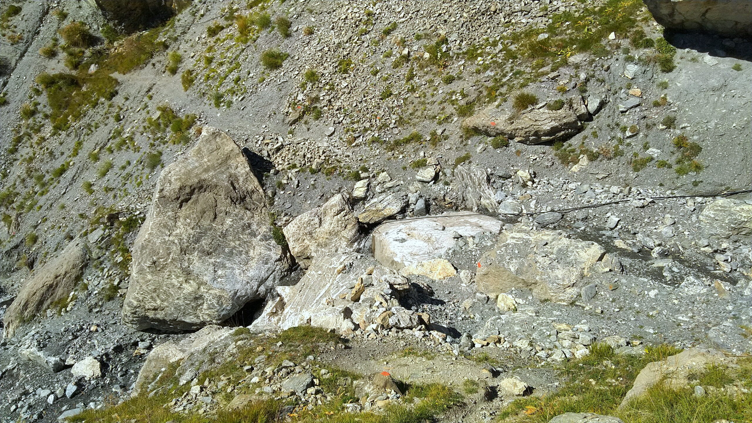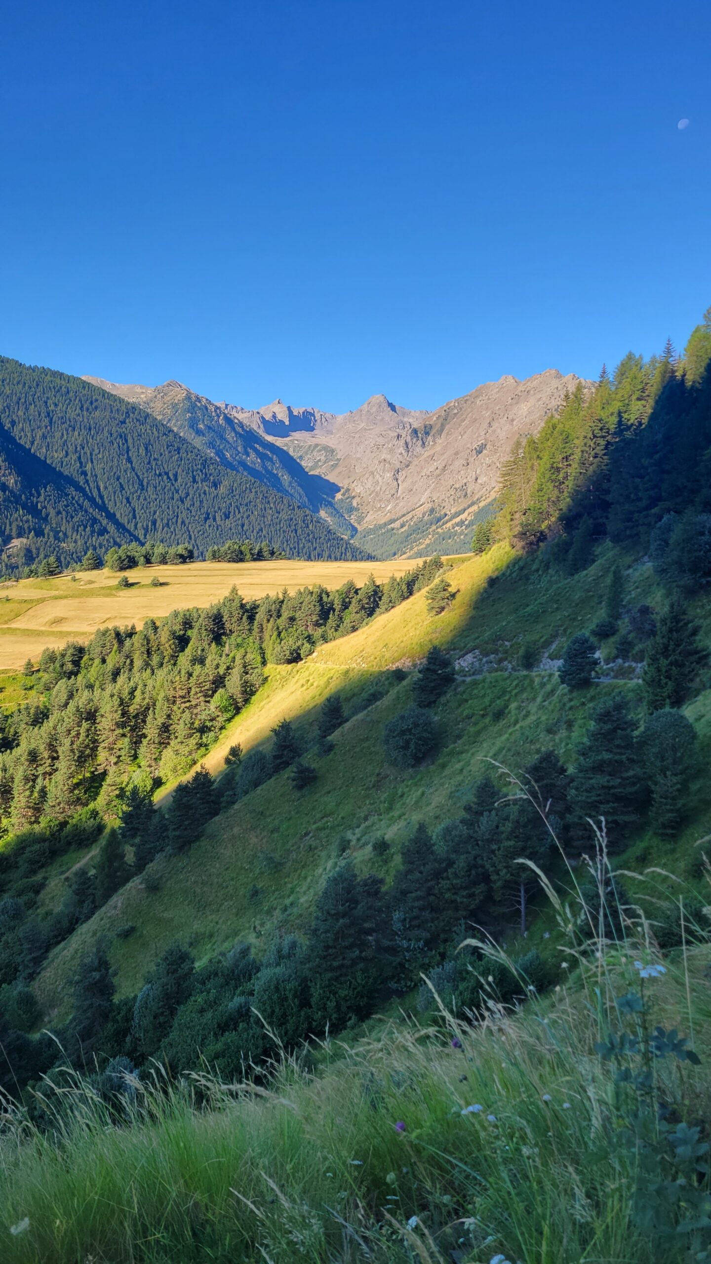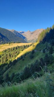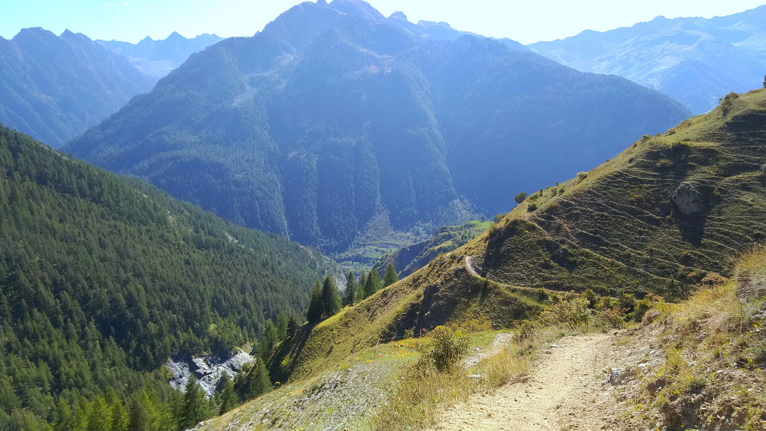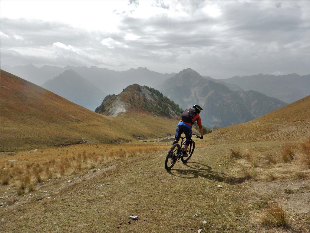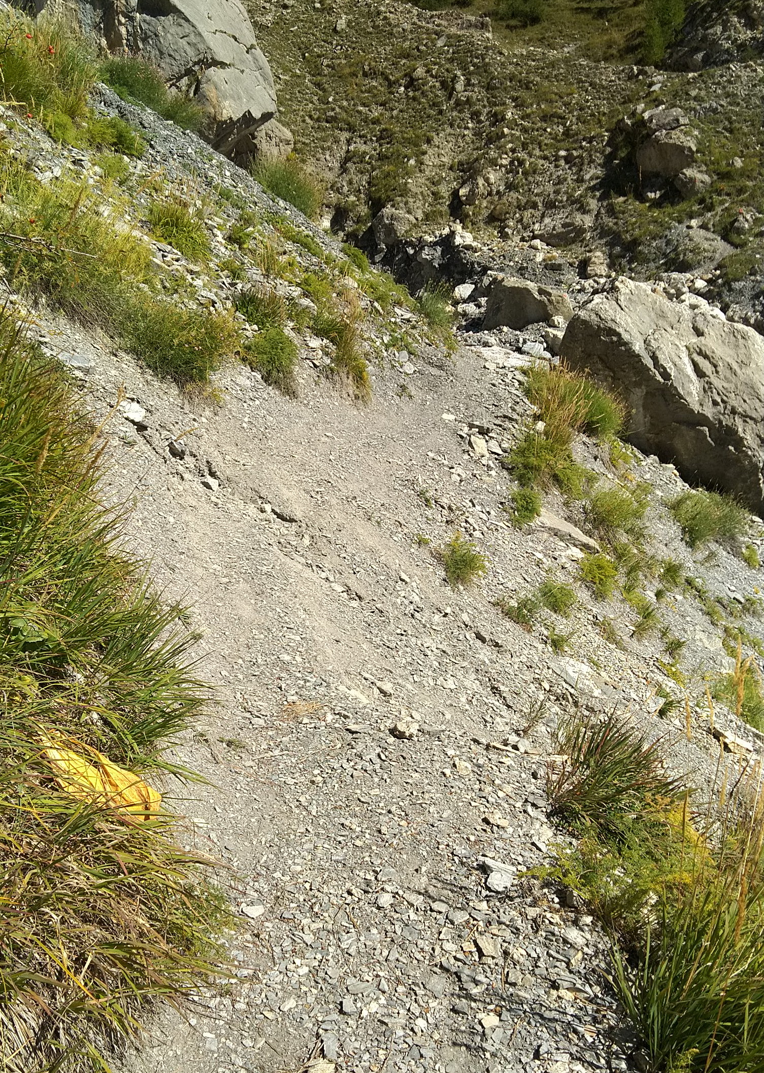 Giunti ad un Gias, si prende senza indugi il sentiero GTA che scende dall’Oserot e lo si segue fedelmente ponendo attenzione ai segnavia. L’ultima parte della discesa diventa piu’ tecnica con traversi esposti e innumerevoli tornantini in rapida successione.