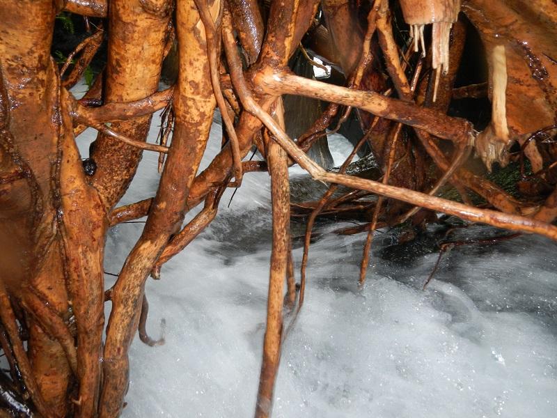 Grande energia nel Vallungo, il torrente è vivo e ci fa sempre lavorare intensamente. Percorso la parte inf. per testare i nuovi armi resinati ieri. Salito in riva dx orografica lasciando gli attrezzi da taglio vicino alla Grande radice, poi di solito ci si perde sul sentiero che porta al ponte intermedio di Chirogno, più comoda la salita in riva sx. Discesa veloce fino all’ingresso del tabogone, dove recupero motosega, segaccio e fausét e mi calo all’imboccatura del tubo. Il mostro è un frassino duro come il ferro e dopo alcuni tagli la motosega si smola, così procedo in manuale togliendo i rami instabili e creando un varco. Due grossi monconi scendono dentro lo scivolo che andranno tagliati con adeguati mezzi, uno in bilico. Il tutto sembra stabile ma la discesa sconsigliabile, ancora pericolosa. In qualche modo bisognerà ridurlo per poi toglierlo, visto che crea un tappo imponente. Non ho incontrato nessun essere semovente, ad eccezione di un presunto bulaiè, vestito da bulaiè che sbraitando al cellulare pareva un agente di borsa…succedono cose strane in questi bei boschi.