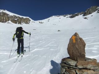 bella gita che regala panorami bellissimi e pendii ideali per una bella sciata. oggi giornata spaziale. siamo saliti fino oltre il colle con gli sci, poi a piedi fino in cima. discesa iniziale su neve primaverile poi nel bosco finale neve piu molle ma sempre ben sciabile.