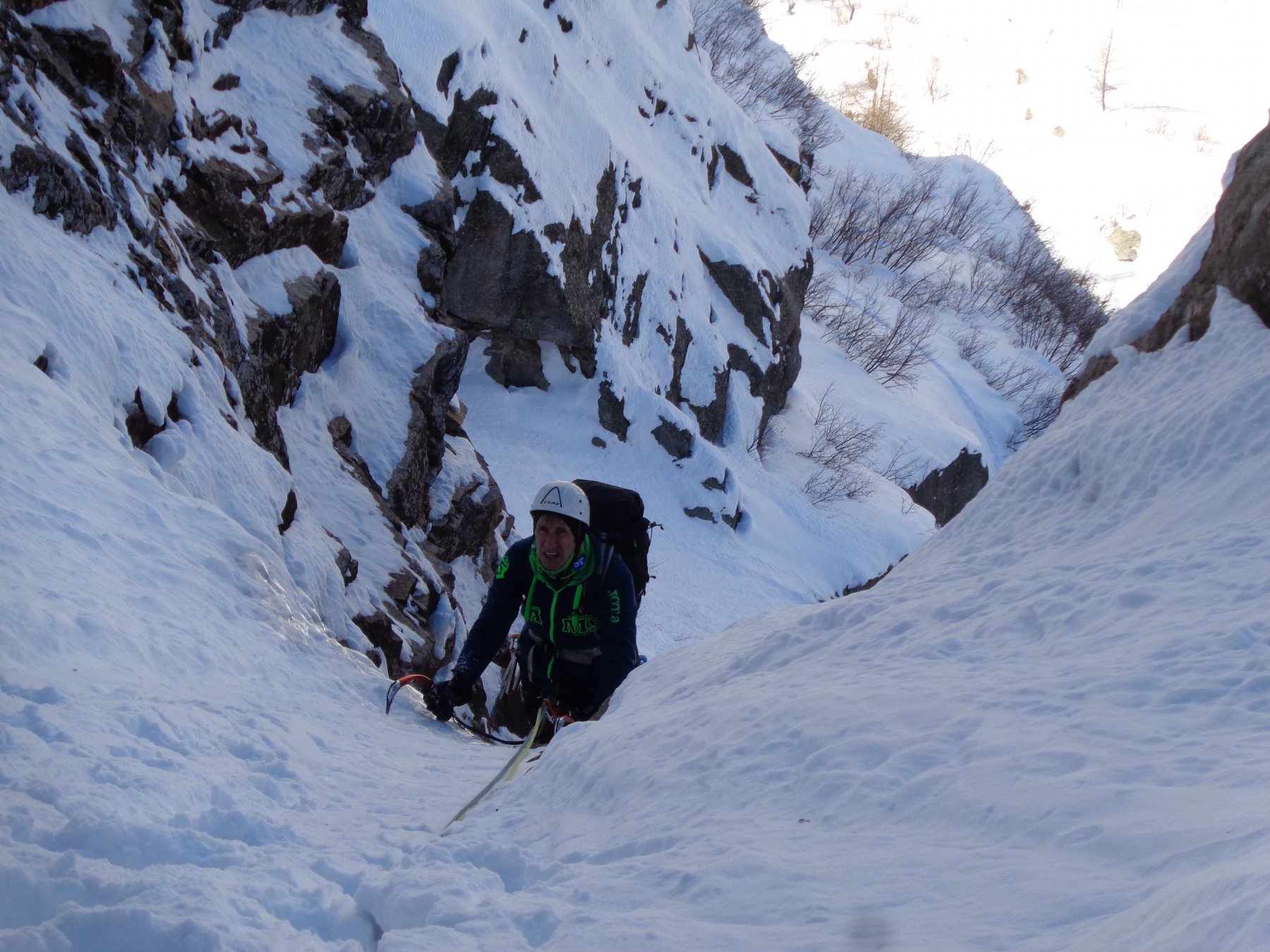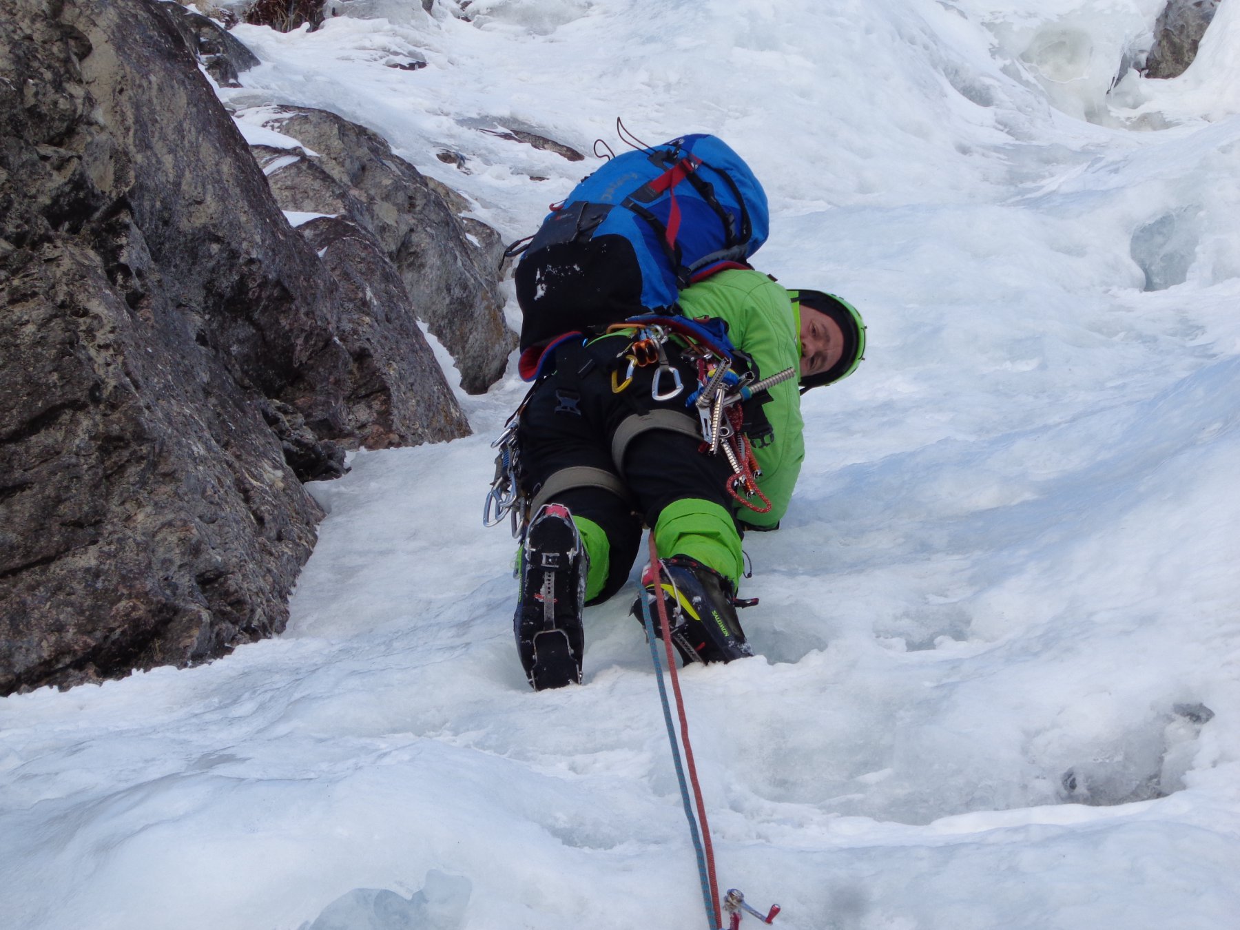 Splendida giornata e bella cascata, ben formata ma con ghiaccio un po’ spaccoso.