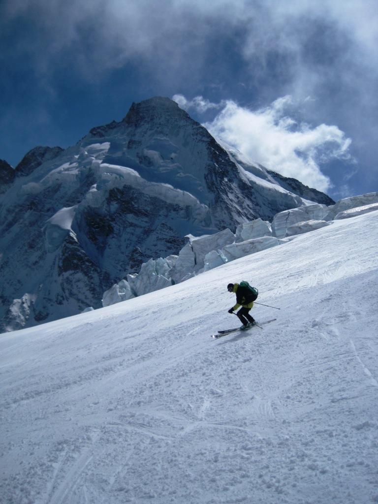 La discesa su Zermatt è troppo nota e frequentata per essere descritta. Difficile immaginare un ambiente più spettacolare.