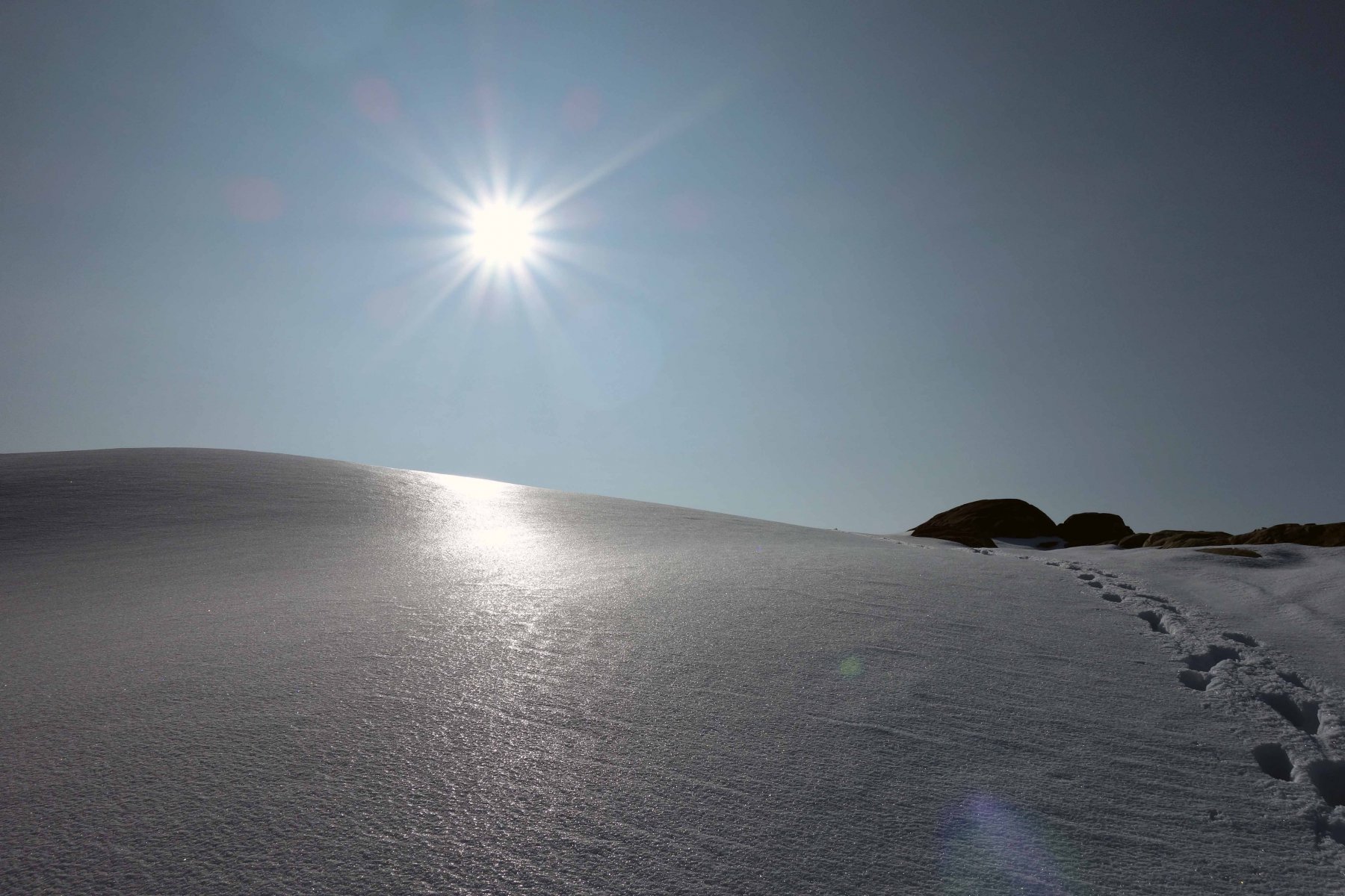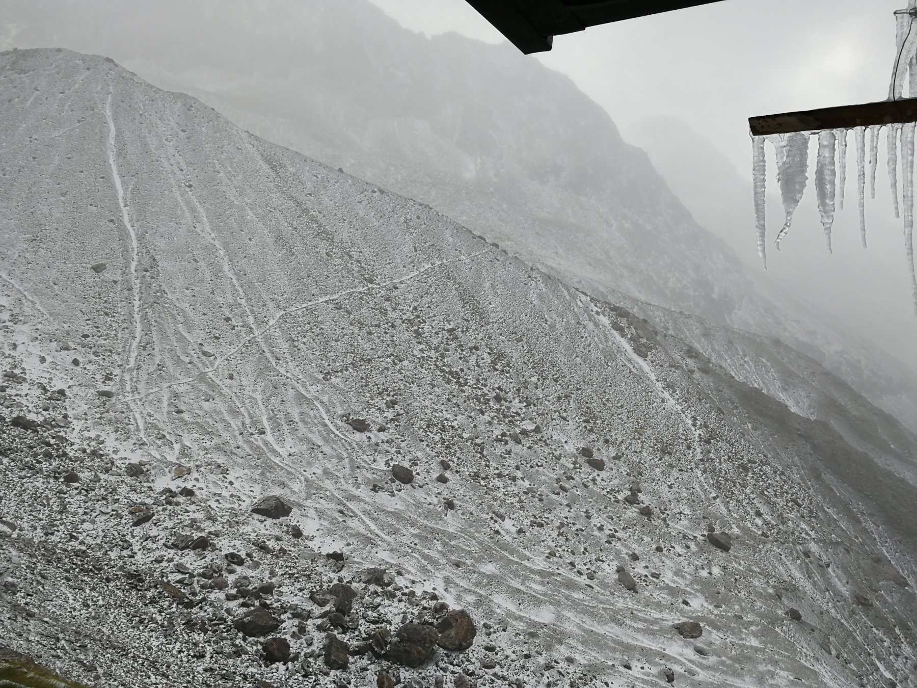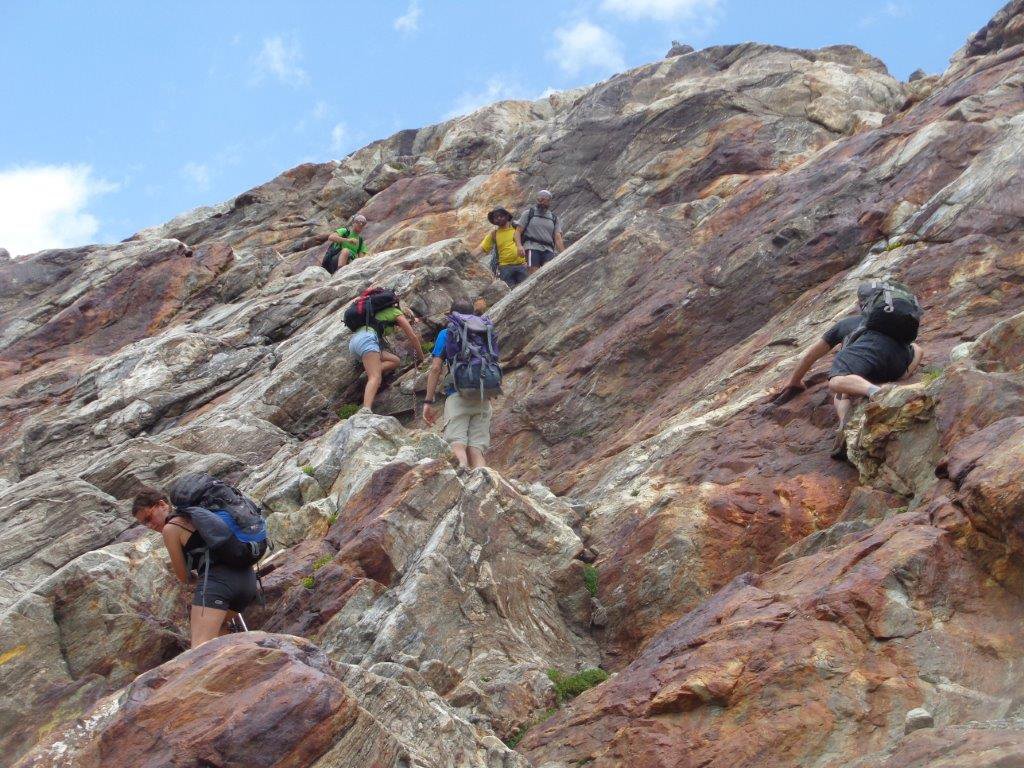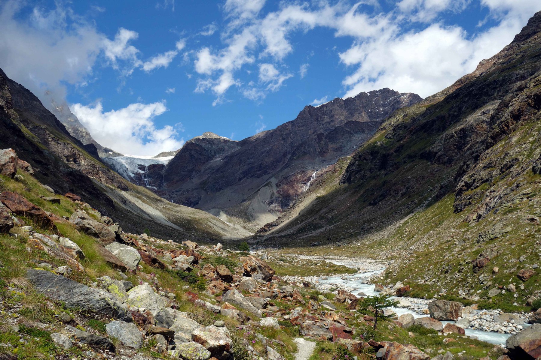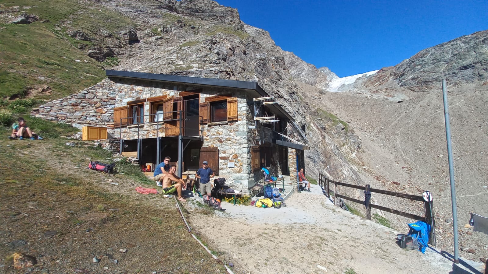 Il 2° giorno si segue il sentiero che sale dietro il rifugio, inizialmente su terriccio ed erba, poi su terreno più ripido e faticoso, tra roccette e placconate sporche di detrito, ripido ma non esposto. Si lascia sulla destra su un cucuzzolo un pluviometro, entrando in una conca morenica superiore, dove il terreno migliora e le varie tracce di sentiero sono più comode.