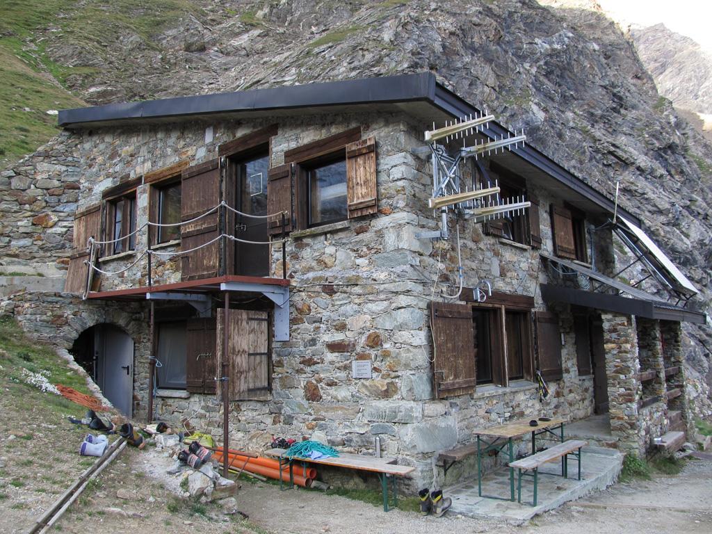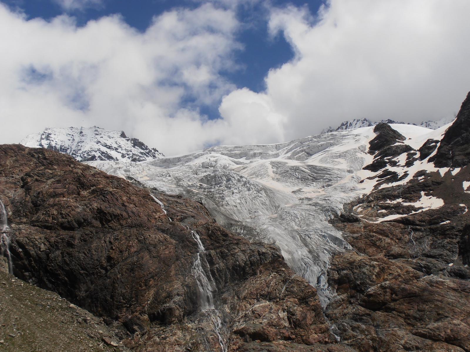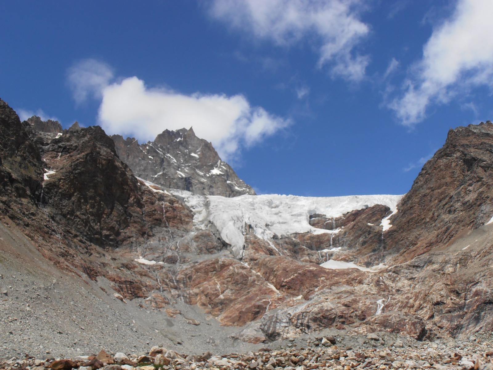 Dall’ultimo ponticello è possibile puntare direttamente al rifugio costeggiando sulla destra il torrente con il vecchio sentiero che tramite alcune catene fisse e scalette nella roccia porta al rifugio: questo tratto può risultare pericoloso nel caso di cadute di seracchi dal ghiacciaio soprastante.