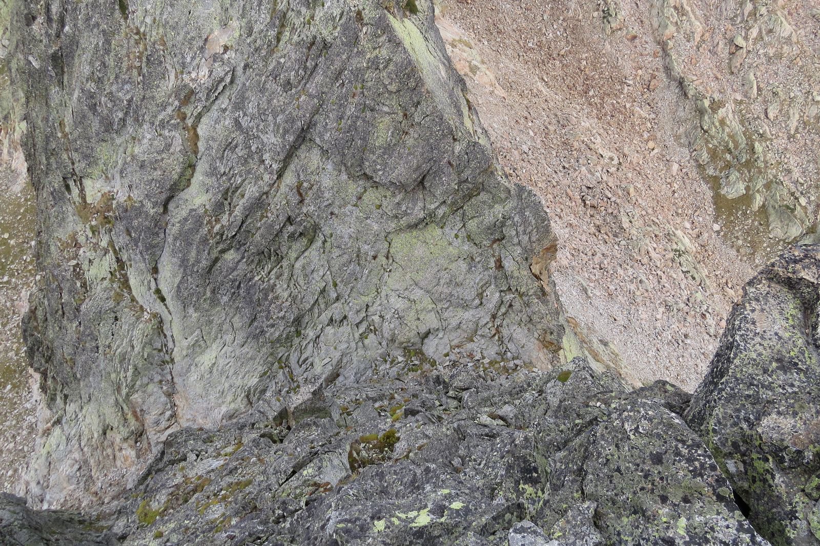 Ritorno per la via normale delicato in discesa perchè non molto evidente: si scende per un camino verso l’intaglio toccato in precedenza, quindi si piega a dx e sceso un canalino roccioso (II+) si raggiunge un piano erboso inclinato.