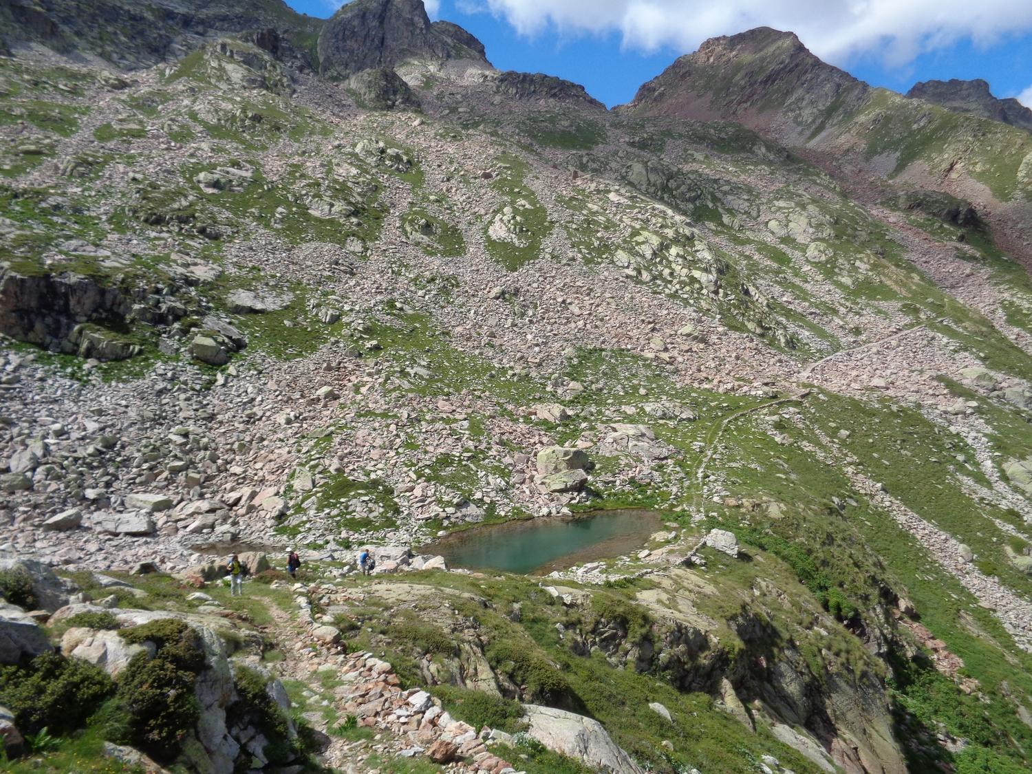 Una volta doppiato il passo, si scende nella Valrossa fino a toccare il rio proveniente dai sovrastanti laghi omonimi.
