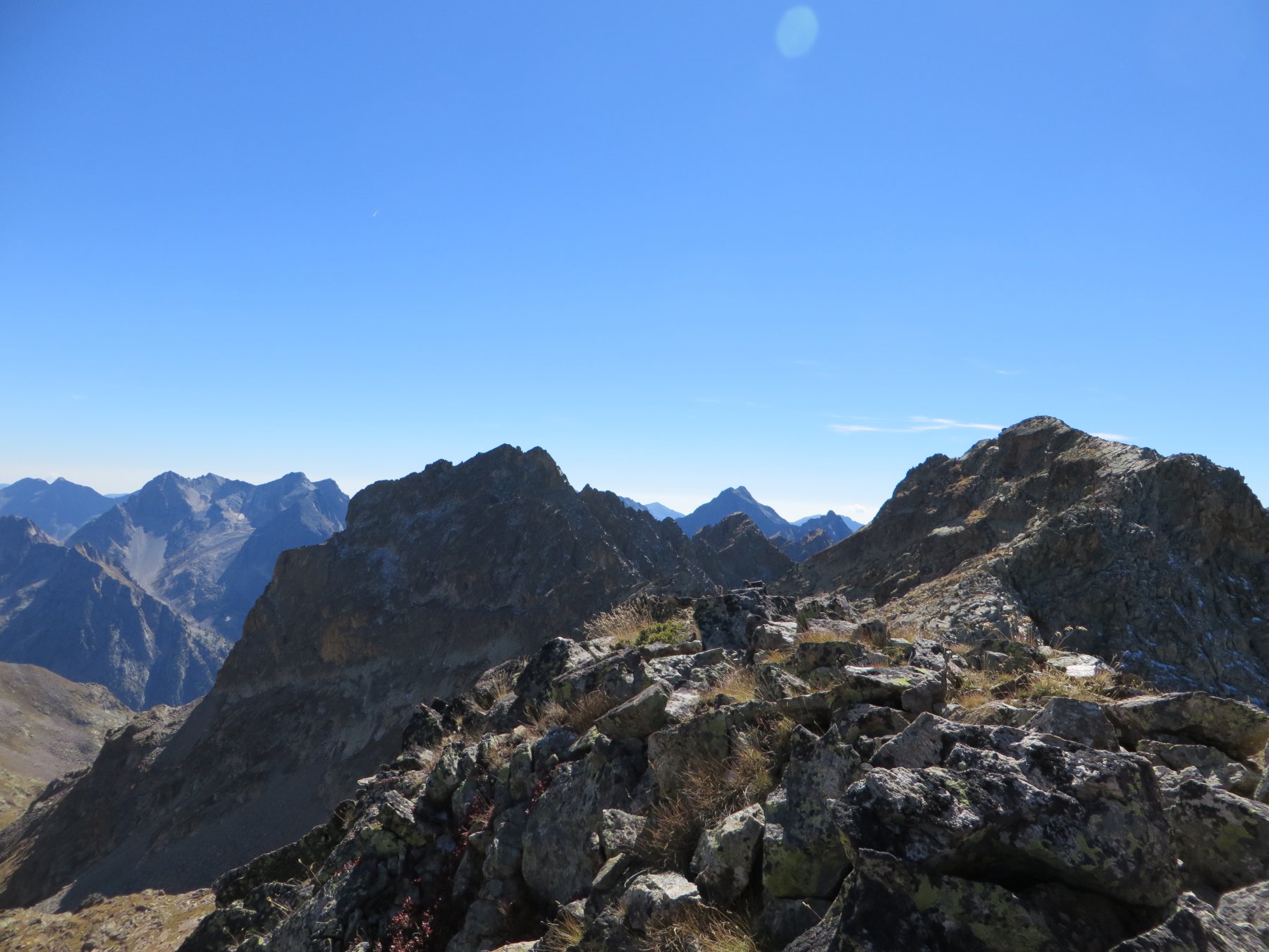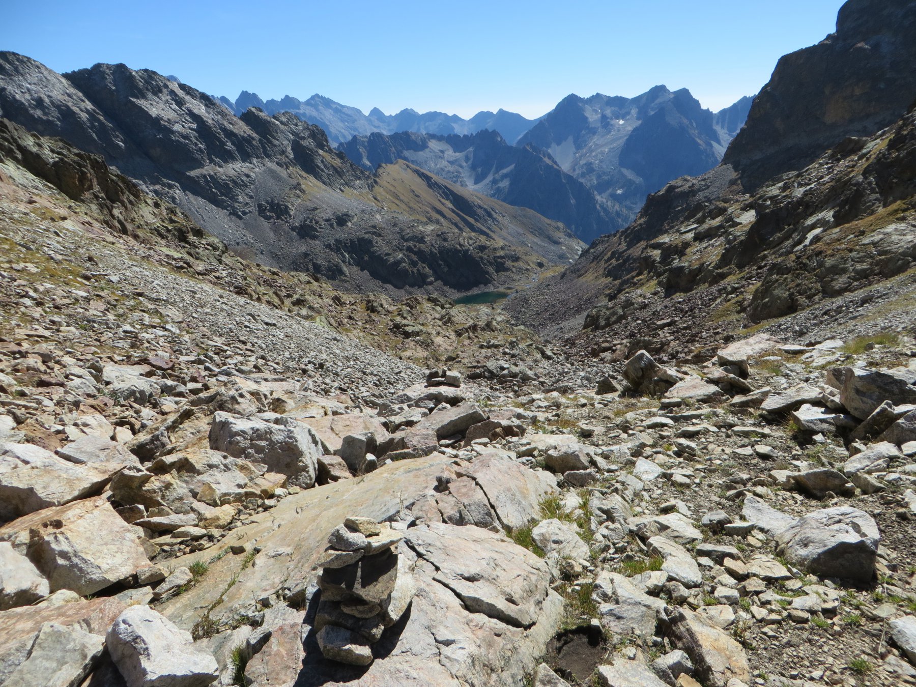 La discesa può essere effettuata lungo l’itinerario di salita oppure, dopo aver toccato la carrareccia (che attraversa la Valrossa), si può proseguire verso i laghi di Valscura, Claus, Portette per poi scendere lungo il sentiro della Val Morta.