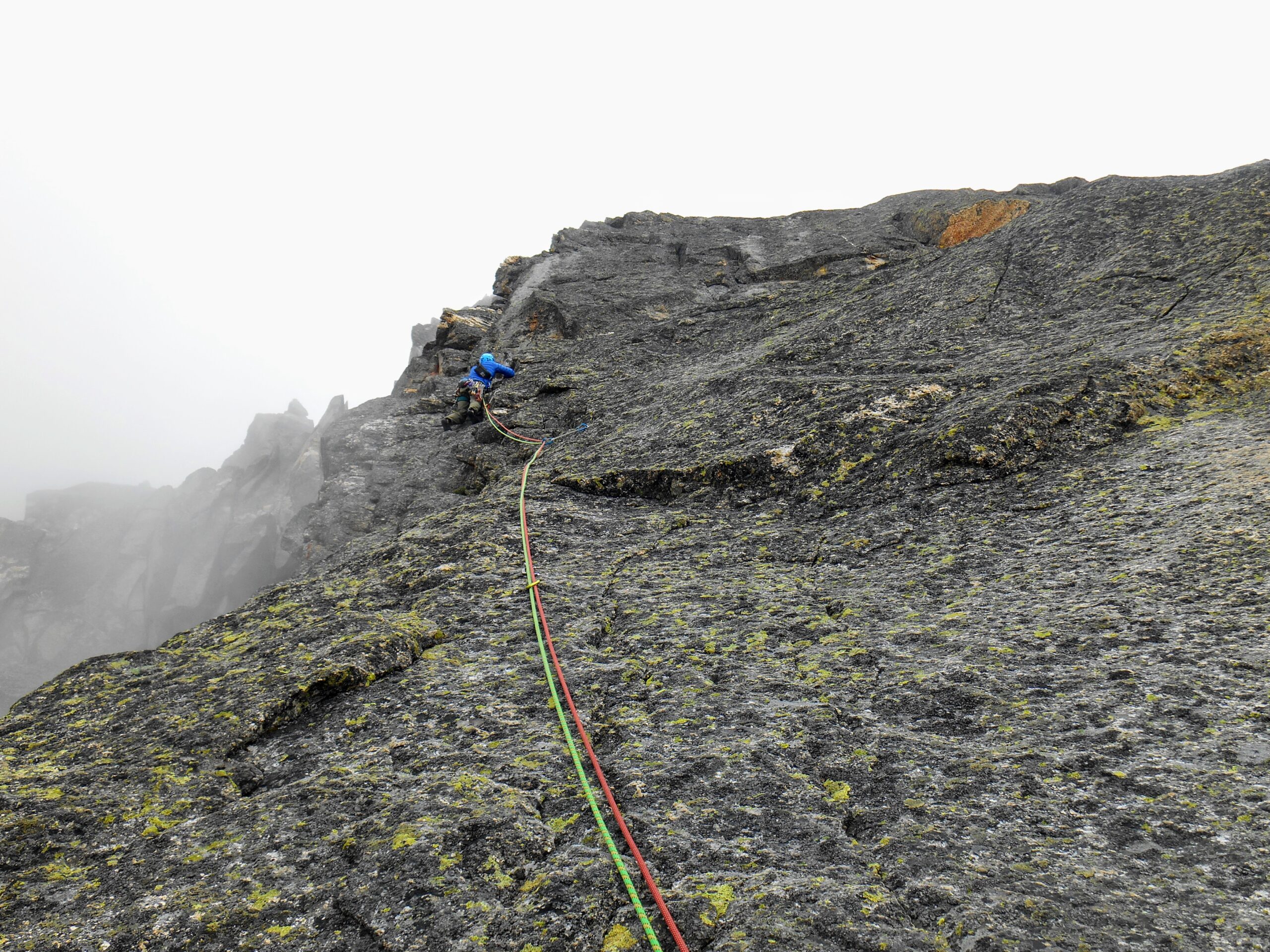 Le soste sono messe in ottima posizione e quasi in linea. Durante la salita, prima di recuperare il partner consiglio di memorizzare bene la sua posizione in sosta cosi sapete dove buttare le corde con precisione perché quasi sicuro arriva la nebbia come ovviamente è capitato a noi.