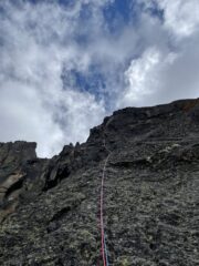 Quanto alla Loredana: arrivati allo zoccolo del Becco di Valsoera, costeggiarlo a sinistra ed entrare nel canalone, salire di un centinaio di metri e sulla destra si iniziano ad intravedere i primi spit. La via attacava proprio in corrispondenza dell’ultima lingua di neve al [18.07.2021]. Ramponi non necessari. La via è spittata in corrispondenza dei punti più difficili dove lo spit permette di effettuare il passo in tranquillità, per il resto è integrabile ad eccezione di qualche tratto nelle placche finali. Stupendi soprattutto il tiro in fessura/camino, il successivo tiro in diedro con la dulferina finale el l’ultimo tiro! In generale non c’è un tiro brutto! Ci siamo poi calati sulla via ma attenzione alla prima doppia che corre in diagonale dove abbiamo incastrato e sfregiato una corda.