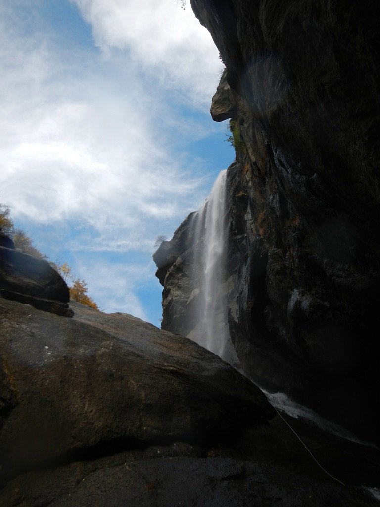 Di grande verticalità ed ambiente selvaggio non ci sono vasche profonde e inforrate, attenzione agli sfregamenti delle corde. La prima verticale è strapiombante e impressionante.