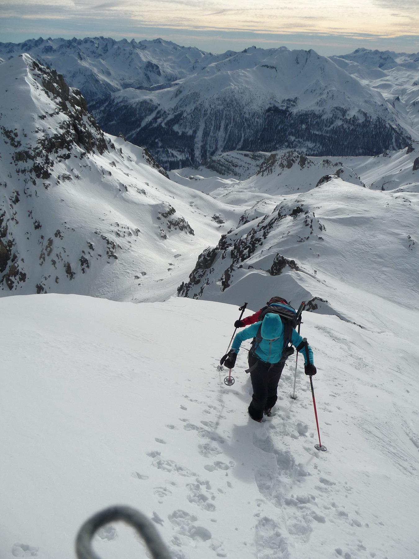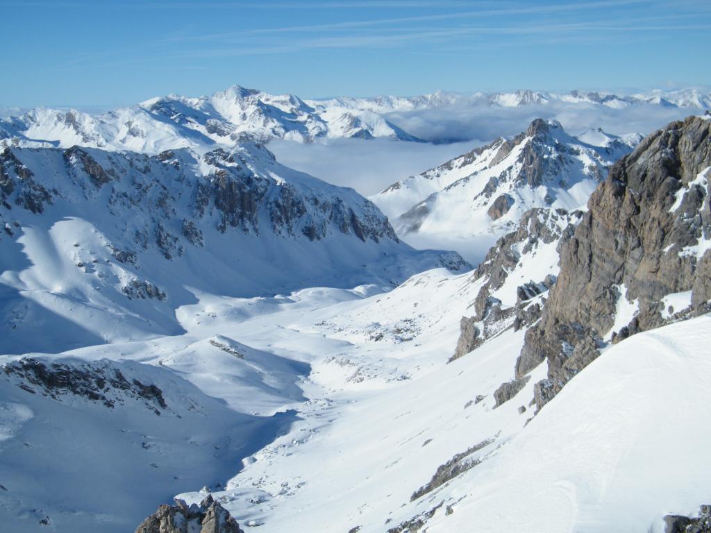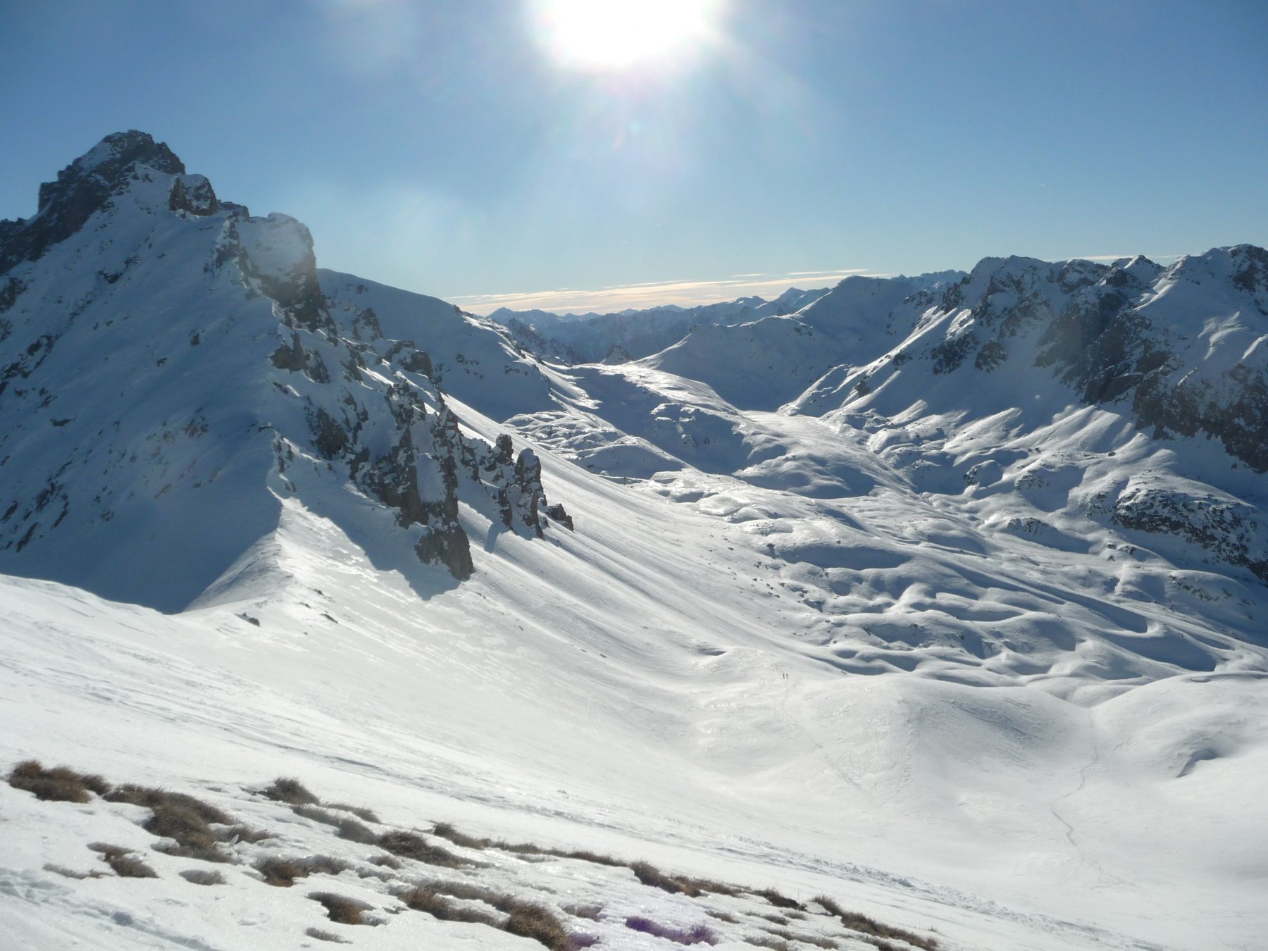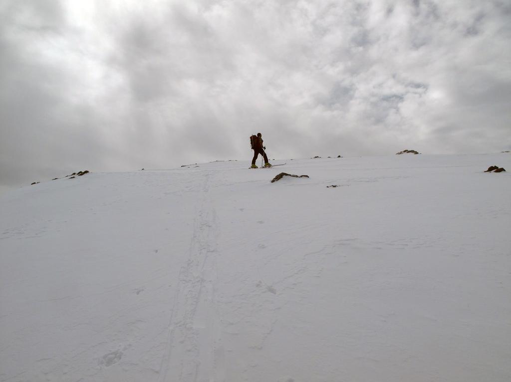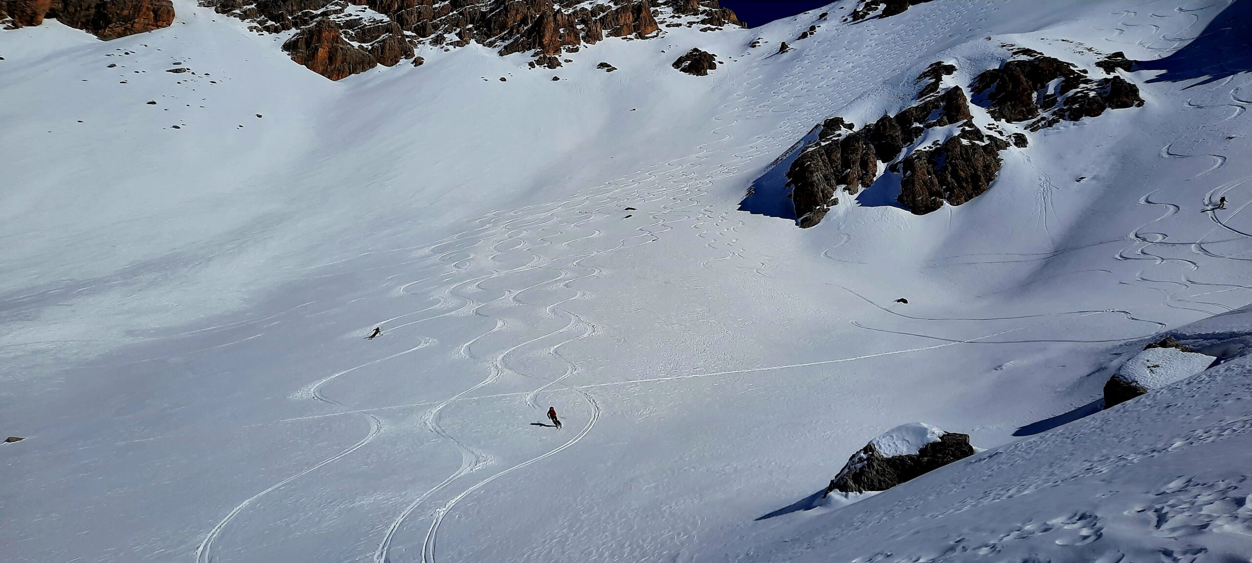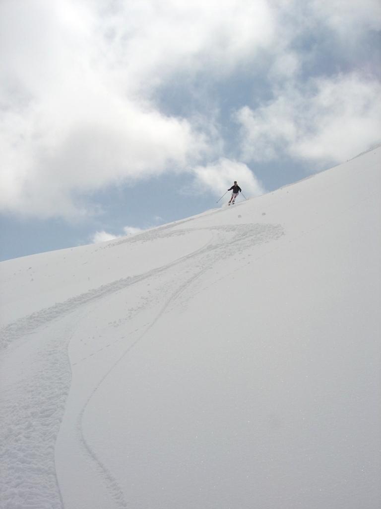 Dal Pontet 1948 m. si segue il Vallone de l’Oronaye lungo la sponda destra orografica sino alla q di 2500m c.a. dove si apre in un ampio anfiteatro (in alternativa ma con neve assestata e sicura si può risalire dal Colle della Maddalena 2000m. il medesimo vallone sulla sinistra orografica facendo attenzione a non innalzarsi troppo sui ripidi pendii per congiungersi con il primo itinerario a q. 2300m. c.a.)