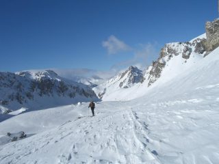 Gita azzeccata. Ma a nostro favore va una fede incrollabile nelle previsioni meteo perchè la pioggia a Bersezio alle 8 del mattino e la partenza sotto la neve avrebbero fatto desistere animi anche più determinati dei nostri. Ma alla fine le previsioni hanno avuto ragione e dopo la neve e l’umidità da post pioggia è arrivato un ventaccio gelido che ha spazzato via le nubi trovandoci così in un paesaggio da favola con un bel velo di farina fresca, per quanto un pò lavorata dal vento. Il ripido pendio sotto la cima era proprio duro che se il dottore lo misurava arrivava quasi a 33, ma chi coi coltelli chi coi ramponi si è riusciti ad arrivare in vetta. A differenza di altre gite della zona recensite quasi totale assenza di vento. Discesa prima su neve dura nel tratto ripidoso, poi su farina un pò lavorata alternata a neve ventata. In basso 5-10 cm di farina un pò pesante su fondo duro. E sopratutto non si tocca mai il fondo fino alla macchina.