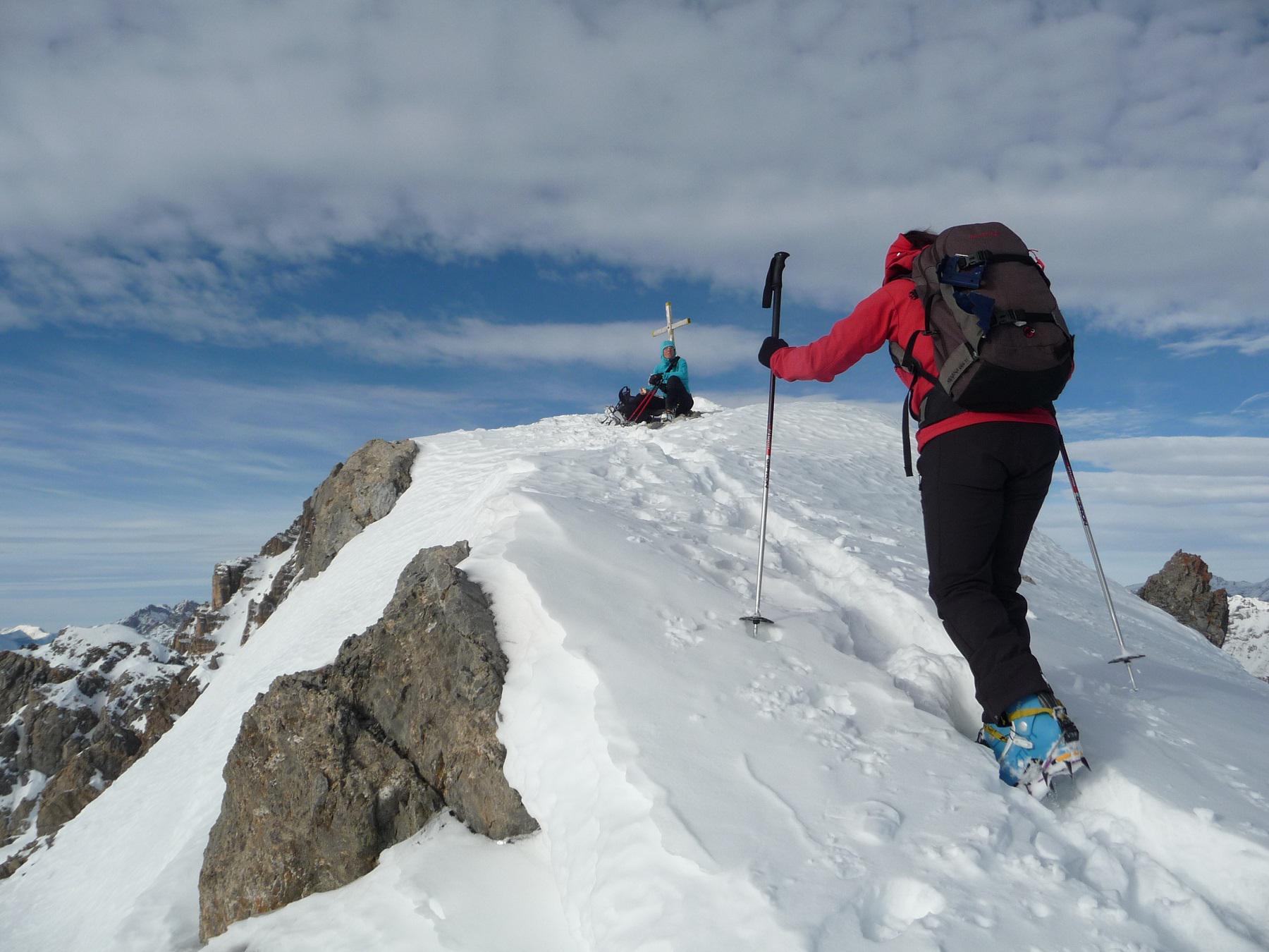 Dopo le Manse risaliamo il vallone de l’Oronaye puntando il Vanclava. Arrivati sotto il monte Feuillas (poco oltre) mi faccio tentare dal pendio canale che sale al col de l’Enclausetta ma vengo riportato all’ordine dalle quote rosa e allora si torna all’idea originale. Saliti in vetta l’ultimo tratto sci in spalla su traccia autostradale e discesa con gli sci diretta dalla punta su crosta portante fino al lago d’Oronaye.