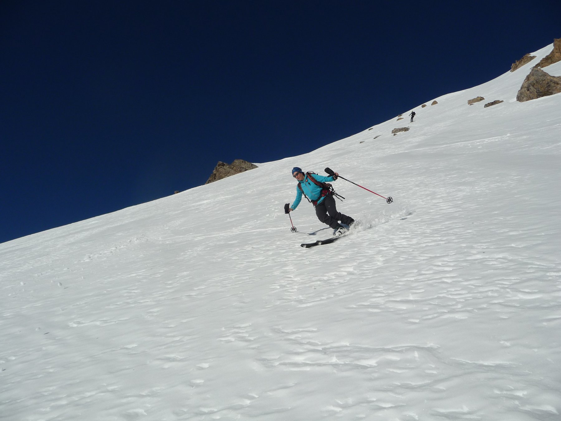 Oggi i programmi iniziali sono saltati causa dimenticanze… Quindi ci siamo trovati a pellegrinare nel vallone dell’Oronaye. Nell’ordine abbiamo provato a salire il canale Ovest della testa di Blaves ma qualche assestamento e una neve non convincente ci hanno spinto su altre scelte. Quindi salita la spalla sud dell’Oronaye e qui bella discesa su pendio est, risalito il canale sud del Feuillas, qui le 5 stelle sono limitative per la neve già primaverile, per ultima la Vanclava e anche qui bella discesa diretta dalla punta in sci.