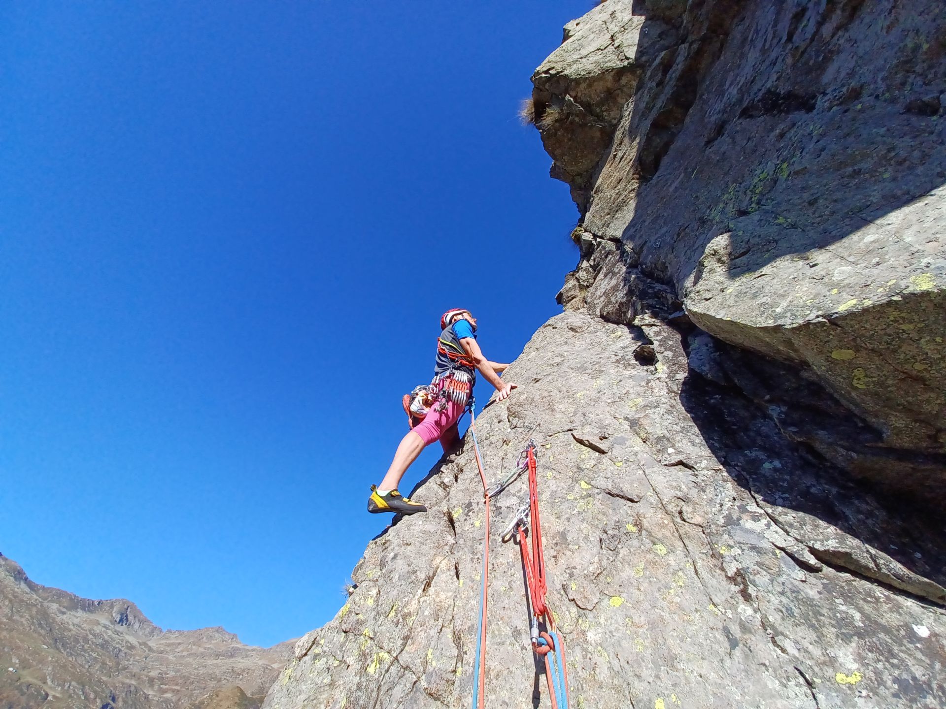 - L2: tecnico su placca fino a raggiungere la sosta alla base dell’evidente fessura 6a
