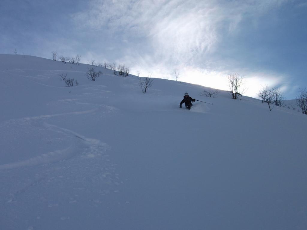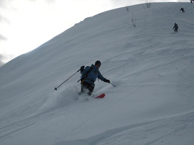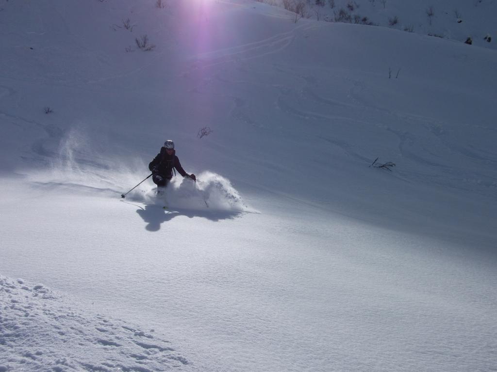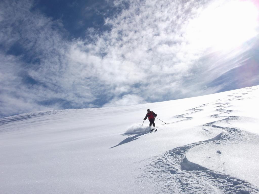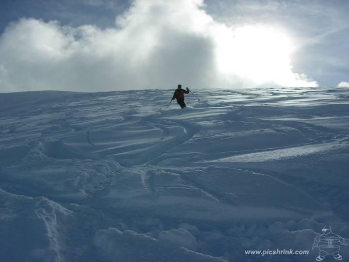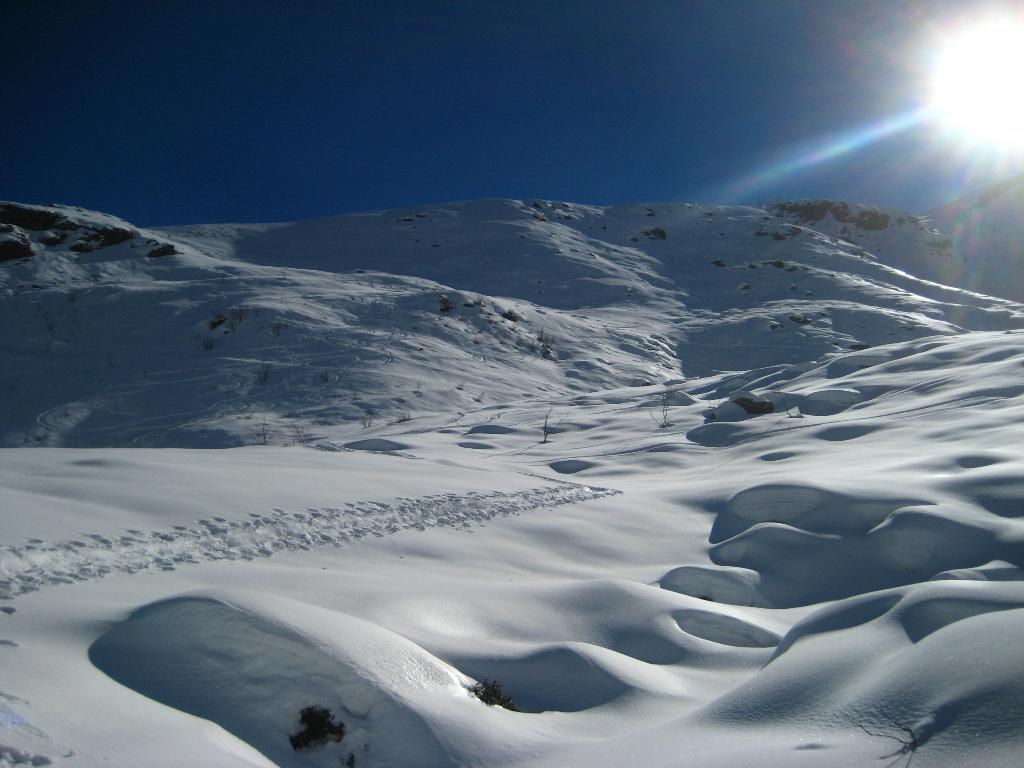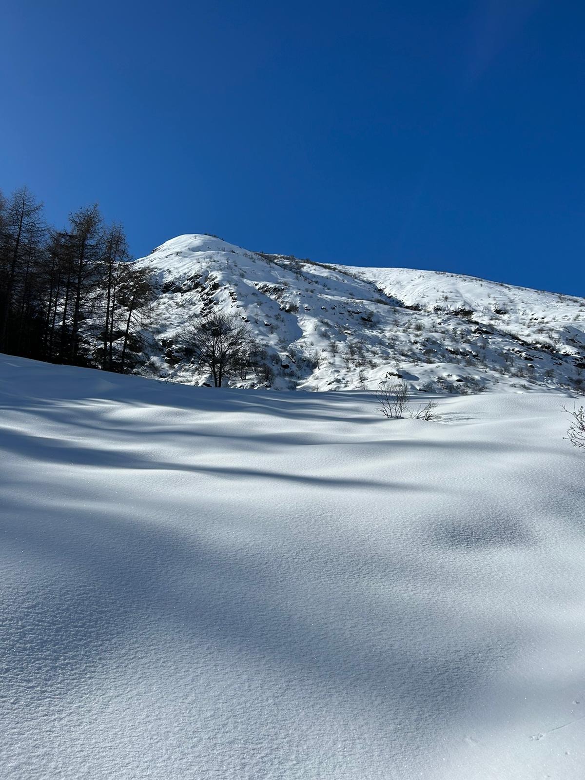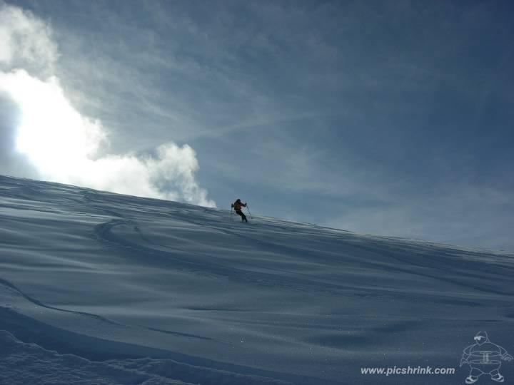 Splendida variante diretta di discesa, su pendii aperti e alquanto sostenuti, che permette di evitare di passare nuovamente all'Alpe della Sella ed evitare buona parte del noioso fondo vallivo raggiungendo direttamente le baite Giasset a q. 1460.