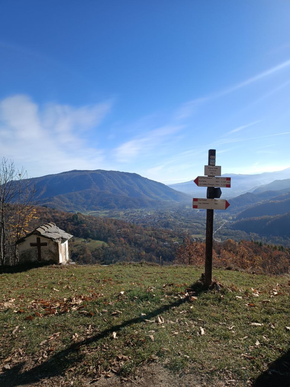 Dall’abitato di Ghisola si procede per strada sterrata con alcuni tagli di sentiero verso la borgata Peccioni. Superate le case la sterrata prosegue un po’ sulla dorsale con alcuni tagli di sentiero segnalati fino ad arrivare a Rocca Ciaramolin, punto panoramico sulla bassa Valle Po.