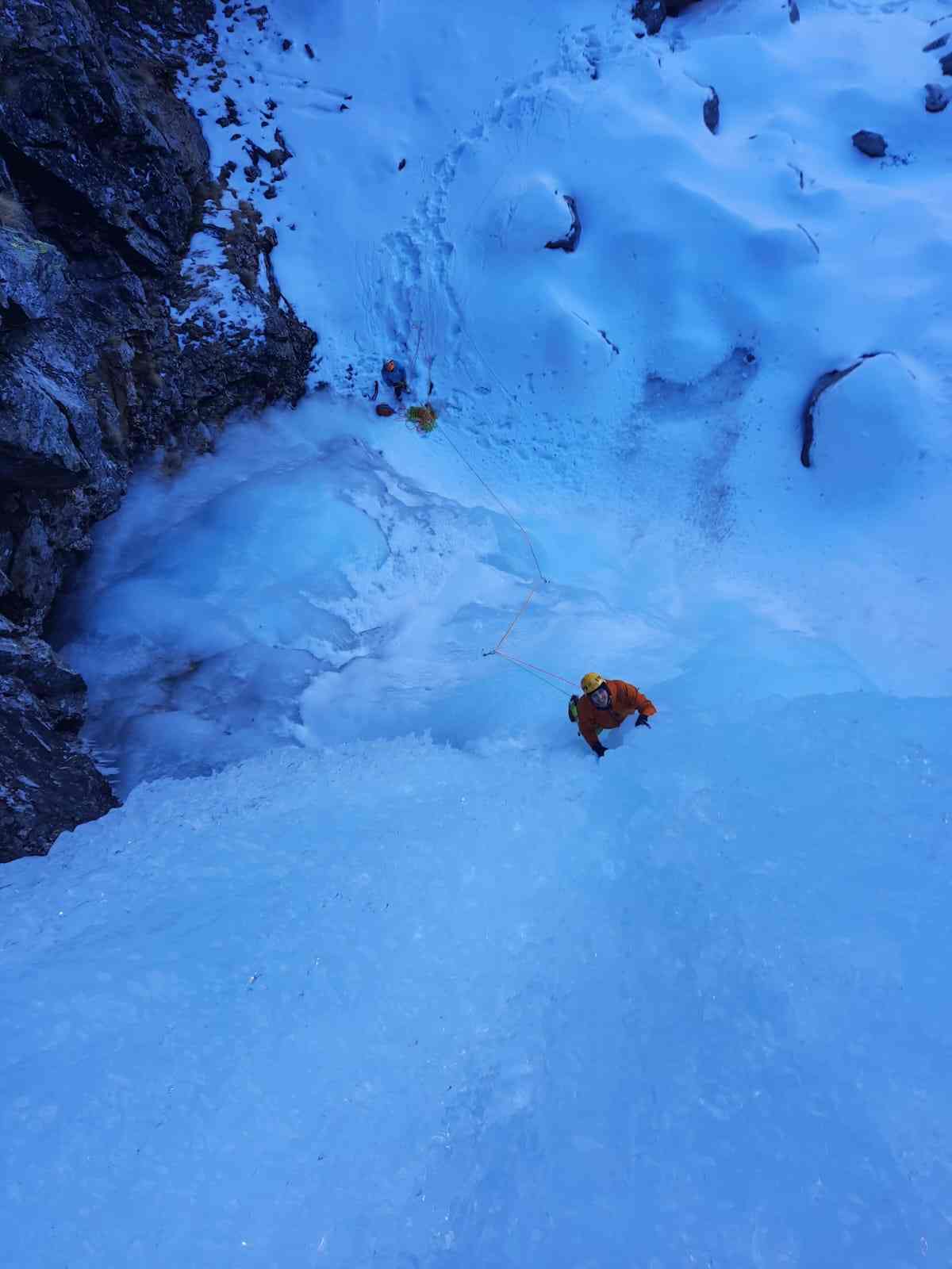 Nei tratti dove è necessario disarrampicare, in caso di scarso innevamento, è possibile fare abalakov su ghiaccio.